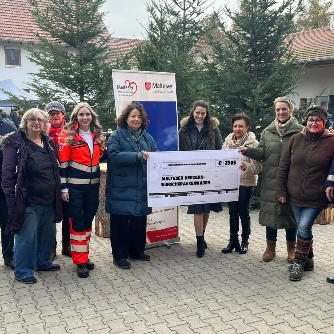 Große Freude herrschte bei den Maltesern, die für den Herzenswunschkrankenwagen eine Spende in Höhe von 2.585 Euro entgegennehmen konnten.