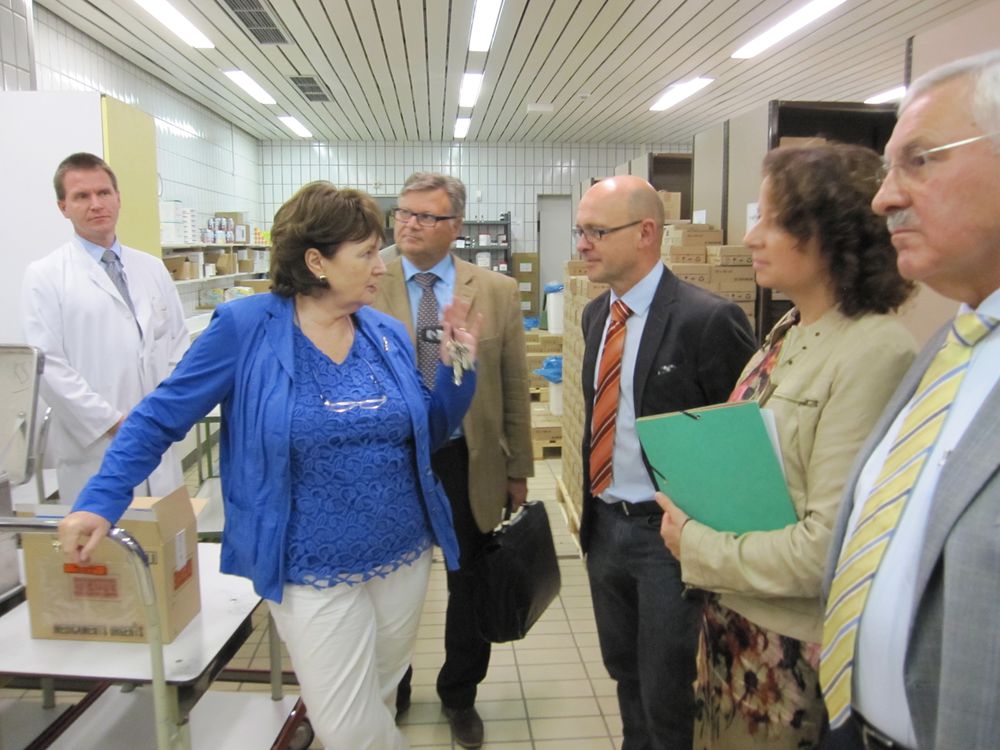 Die Landtagsabgeordnete Ruth Müller hatte die Besichtigung angeregt, nachdem sie über eine Anfrage erfahren hatte, dass durch die Änderungen der Apothekenbetriebsordnung zahlreiche Krankenhäuser von Umbaumaßnahmen betroffen sind. In Niederbayern gibt es derzeit neun Krankenhausapotheken, von denen beispielsweise Passau bereits 2011 den Umbau abgeschlossen hat. Neu hinzugekommen ist in der Apothekenbetriebsordnung auch ein verstärkter Anspruch an das Qualitätsmanagement und an Hygienemaßnahmen, informierte die Verwaltungsratsvorsitzende Dr. Marlis Flieser-Hartl die Kreisräte. Interessant fanden die Kreisräte auch den Blick in den Reinraum, in dem Zytostatika hergestellt und verarbeitet werden.