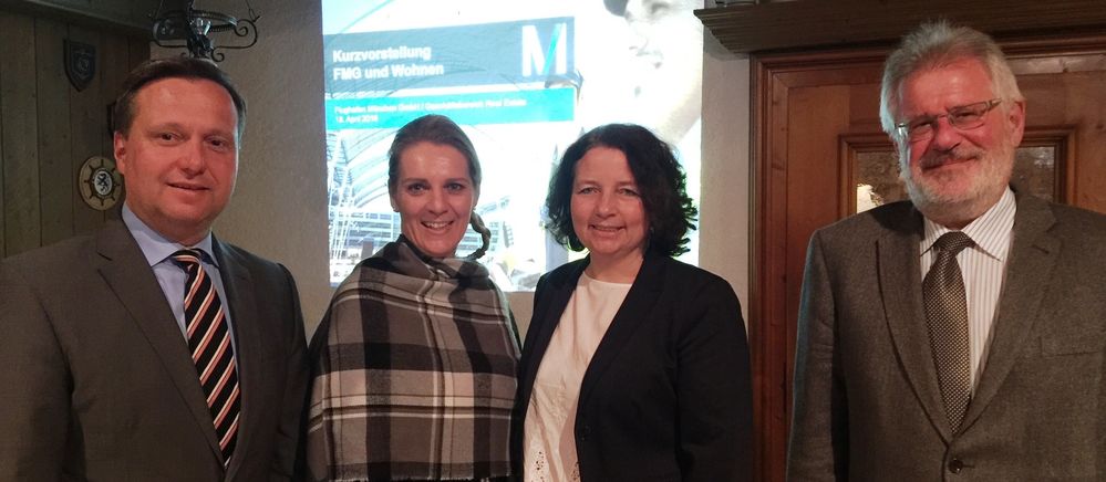 Foto v. l. n. r.: Diskussion über das Wohnkonzept der FMG: Carsten Wilmsen, Partricia Steinberger, Ruth Müller, Rudolf Strehle