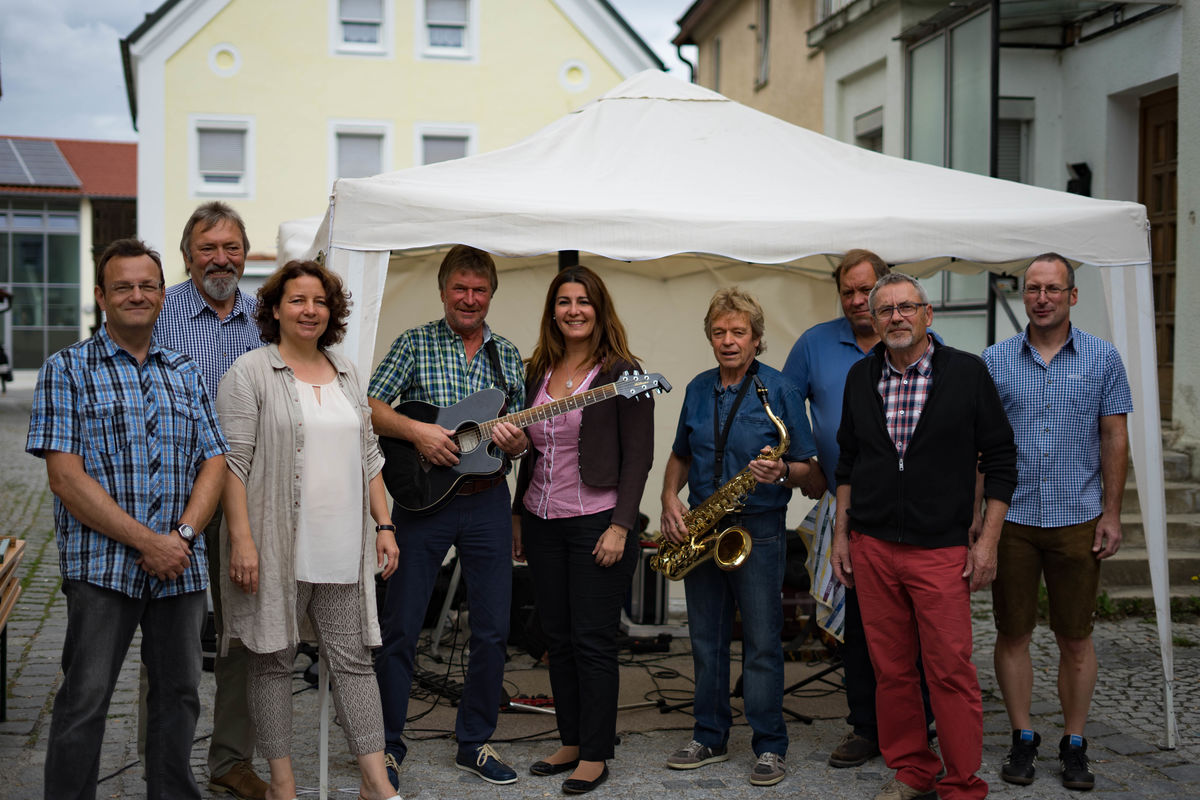 Das Torbräufest-Team des SPD-Ortsvereins Pfeffenhausen mit Musikern und Kreisrätin Filiz Cetin