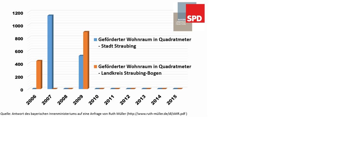 Die Landtagsabgeordnete der SPD, Ruth Müller, kritisiert die mangelnde Mietwohnraumförderung der Staatsregierung. „In Stadt und Landkreis Straubing sind in den letzten zehn Jahren gerade einmal 2.992 Quadratmeter Mietwohnraum staatlich gefördert worden“, zitiert Müller aus den Zahlen ihrer Anfrage. In den allermeisten Jahren zwischen 2006 bis 2015 sei überhaupt nichts passiert: in der Stadt Straubing fand acht Jahre kein Wohnungsbau im geförderten Mietwohnraumbereich statt und im Landkreis Straubing-Bogen wurde sechs Jahre kein einziger Quadratmeter hierfür neu geschaffen.