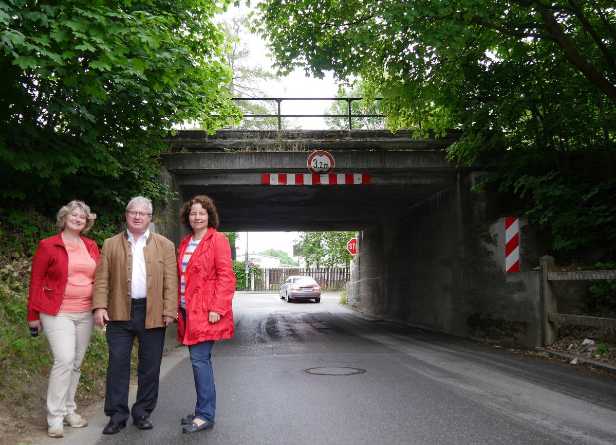 Ruth Müller besichtigte mit ihrer Kollegin aus dem Bundestag, Rita Hagl Kehl und Vilsbiburgs 2. Bürgermeister und Stadtrat Hans Sarcher, zwei der drei mehr als 90jährigen Brücken in Vilsbiburg. „Alleine in Vilsbiburg sind vier Brücken der Kategorie drei mit umfangreichen Schäden zu finden. Anstatt über Steuersenkungen nachzudenken, sollten die Mehreinnahmen für die schnelle Ertüchtigung unserer Infrastruktur eingesetzt werden“, so Müller. Außerdem wurde den Abgeordneten bei der Besichtigung der schafhaften Brücken schnell bewusst, welch große Bedeutung diese für den Durchgangsverkehr haben. Aufgrund der hohen Frequenz herannahender Fahrzeuge dürfe bei der nötigen Sanierung auch der Sicherheitsaspekt nicht vergessen werden, weshalb der Bau eines Fußgängerweges dringend anzuraten wäre. Dies gelte vor allem für die Brücke an der Kreuzung Industriestraße – Herrnfelderstraße, sowie zur Bahnhofsstraße. „Im Vorgriff auf den Ausbau des Brenner-Basistunnels sollte man bereits heute die Weichen stellen und die Brücken entsprechend sanieren, sowie dem Sicherheitsaspekt Rechnung tragen“, so Hans Sarcher. Eine Brücke werde bereits saniert, da es sich hierbei um die Anbindung an die Staatsstraße handle, jedoch müssten auch die anderen beiden in die Jahre gekommenen Brücken dringend saniert werden.