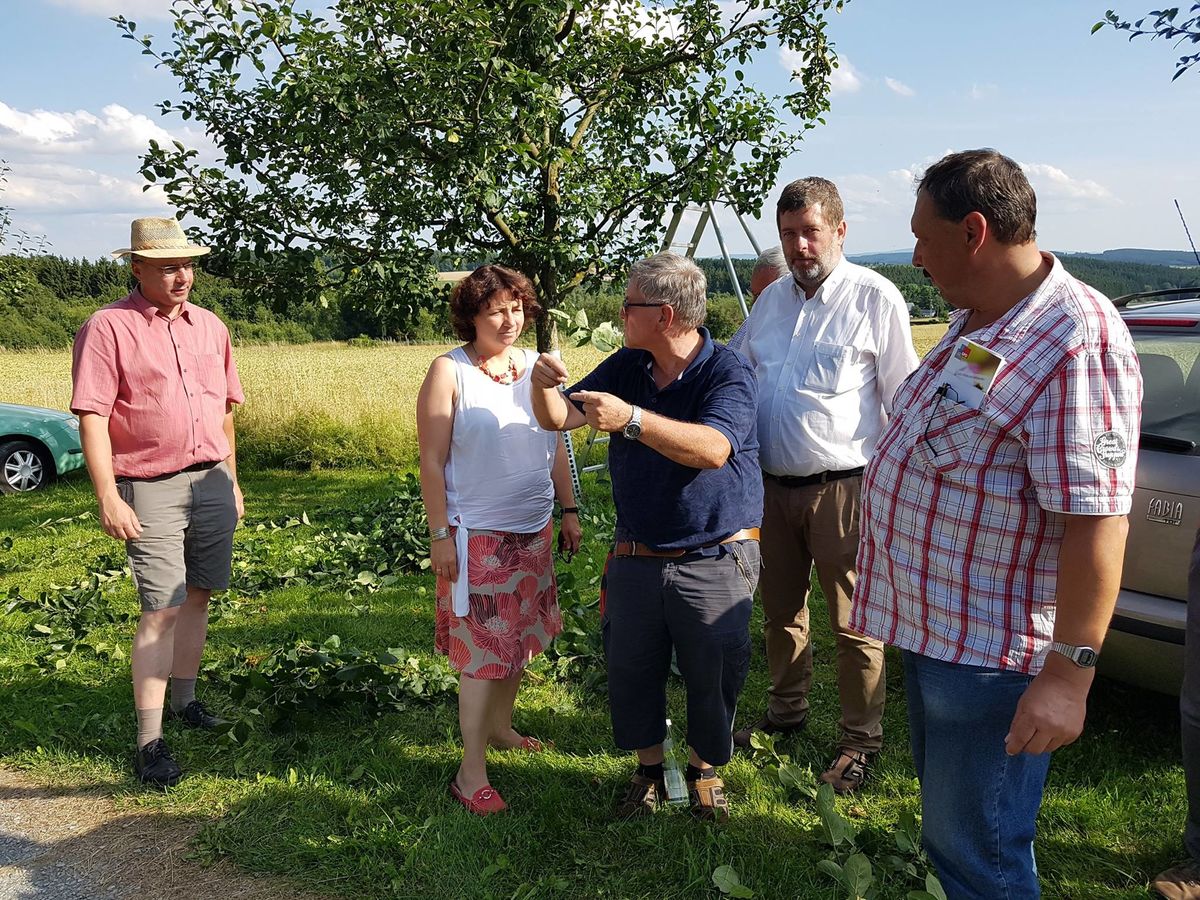 Selbitz/Wacholderbusch. Auf Einladung des SPD-Umweltpolitiker und Baumpfleger Klaus Adelt nahm die Landshuter SPD-Abgeordnete Ruth Müller am Sommerschnittkurs in der Streuobstwiese Wacholderbusch teil. Mit dabei sind auch die Imker der Region. Zahlreiche Bienenvölker schwärmen auf dem Gelände der Streuobstwiese des Gartenbauvereins in Wacholderbusch täglich aus, um wertvollen Blütennektar zu sammeln.