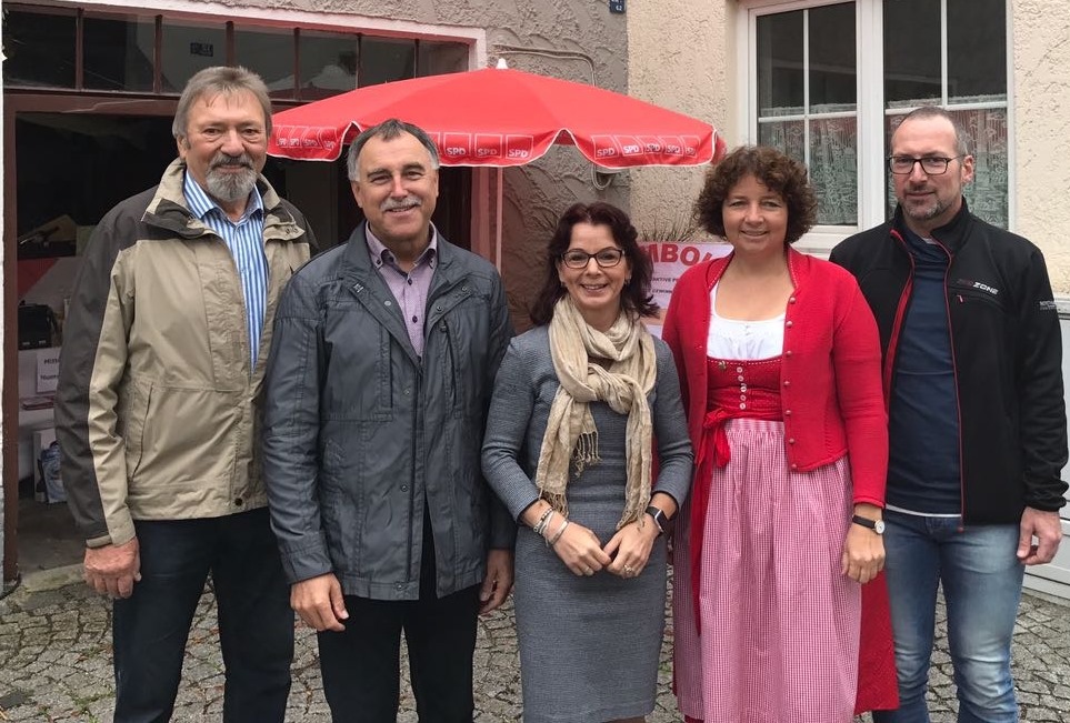 Kreisrat Arno Wolf, Bürgermeister Karl Scharf, Bundestagskandidatin Anja König, Ruth Müller, MdL, Thomas Niederreiter