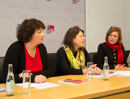 Bildunterschrift: Bei der SPD-Pressekonferenz im Bayerischen Landtag: Die frauenpolitische Sprecherin Ruth Müller, Prof. Dr. Silke Laskowski und die stellvertretende Fraktionsvorsitzende und frauenpolitische Sprecherin Dr. Simone Strohmayr. (von links)