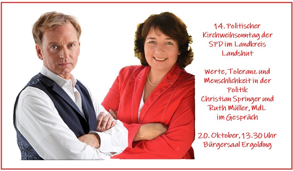 Zum 14. Kirchweihsonntag der SPD im Landkreis Landshut hat der aus dem Bayerischen Fernsehen bekannte Kabarettist und Autor Christian Springer sein Kommen zugesagt. Passend zum kirchlichen Fest wird das Thema des Talks mit der Kreisvorsitzenden und Landtagsabgeordneten Ruth Müller lauten: „Werte, Toleranz und Menschlichkeit in unserem Land und in der Politik“. Die Frage nach den Werten beschäftigt Christian Springer auch in seinem neuen Programm, denn für die meisten Deutschen liege der wichtigste Wert bei 120 zu 80 – das ist der Blutdruck. Gleich dahinter kommen Cholesterin, Feinstaub und Pünktlichkeit. Doch wo bleiben die Werte wie „Mitmenschlichkeit, Toleranz und Empathie“ – insbesondere im politischen Alltag? Wenn die Sprache verroht, die Grenzen des Sagbaren verschoben werden und das Zusammenleben von Neid, Missgunst und Ausgrenzung bestimmt werden, ist es an der Zeit, gegenzusteuern und Toleranz und Menschlichkeit zum Kompass seines politischen Handelns zu machen, erläutert Ruth Müller die Beweggründe für die Einladung Christian Springers in den Ergoldinger Bürgersaal. Zudem wird Springer sein Engagement bei dem von ihm gegründeten Verein “Orienthelfer“ vorstellen.