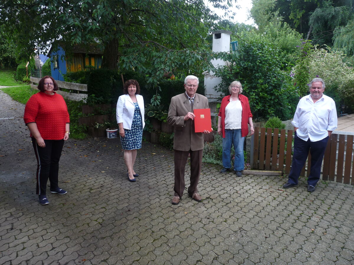 Ruth Müller, MdL, hielt die Laudatio und blickte auf diese lange Zeit zurück. Die beiden traten am 1. Dezember 1970 in die SPD ein. Reinhard Folda war aber schon lange vorher als Jugendlicher mit seinem Vater, der für die SPD im Stadtrat in Landshut saß, auf vielen Parteiversammlungen und Wahlkampfaktionen unterwegs. „In den 50 Jahren hast Du die drei SPD-Bundeskanzler Willy Brandt, Helmut Schmidt und Gerhard Schröder erlebt und begleitet“, bedankte sich Müller für sein langjähriges Engagement und wünschte ihm und allen Genossen, mit Olaf Scholz wieder einen sozialdemokratischen Bundeskanzler zu erleben. Und dabei habe er alle Arbeiten, die angefallen sind, erledigt – vom Plakate kleben bis zum Flyerverteilen. Reinhard Folda erinnert sich auch noch an aufregende Parteiveranstaltungen, wo es zu hitzigen Debatten mit dem politischen Gegner kam, die als Störer auftraten. „Da musste ich immer für Ruhe sorgen“, so Folda. Vor 20 Jahren gründeten Hedwig und Reinhard Folda den SPD-Ortsverein Hohenthann mit und kandidierten bei jeder Kommunalwahl. Reinhard Folda war von Beginn an im Ortvereinsvorstand aktiv. „Umso mehr freut es uns die Ehrenurkunden mit der goldenen Ehrennadel überreichen zu dürfen und hoffen, dass beide noch viele Jahre die aktuelle Politik mitgestalten und verfolgen“, so Müller.