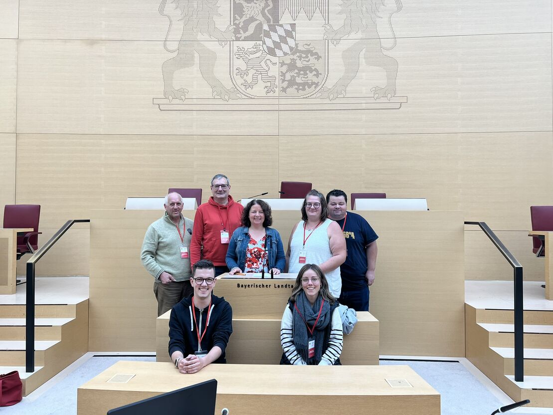 Bei einer Führung durch das Maximilianeum hörten die Besucherinnen und Besucher von der geschichtlichen Bedeutung der Räumlichkeiten. Höhepunkt des Landtagsbesuches war die Besichtigung des Plenarsaals. Für eine Diskussion mit der Landtagsabgeordneten Ruth Müller durften die Besucherinnen und Besucher auf den Stühlen Platz nehmen, auf denen sonst die Abgeordneten sitzen. Müller stellte sich und ihre Arbeit im Ausschuss für Ernährung, Landwirtschaft, Forsten und Tourismus vor und beantwortete zahlreiche Fragen. Unter anderem ging es um die Themen Alkohol, Cannabis, Wohnungsnot bis hin zur Zuwanderung.