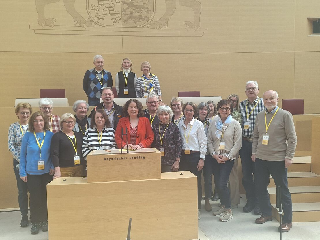 Bei einer Führung durch das Maximilianeum hörten die Besucherinnen und Besucher von der geschichtlichen Bedeutung der Räumlichkeiten. Höhepunkt des Landtagsbesuches war die Besichtigung des Plenarsaals. Für eine Diskussion mit der Landtagsabgeordneten Ruth Müller durften die Besucherinnen und Besucher auf den Stühlen Platz nehmen, auf denen sonst die Abgeordneten sitzen. Müller stellte sich und ihre Arbeit im Ausschuss für Ernährung, Landwirtschaft, Forsten und Tourismus vor und beantwortete zahlreiche Fragen.
