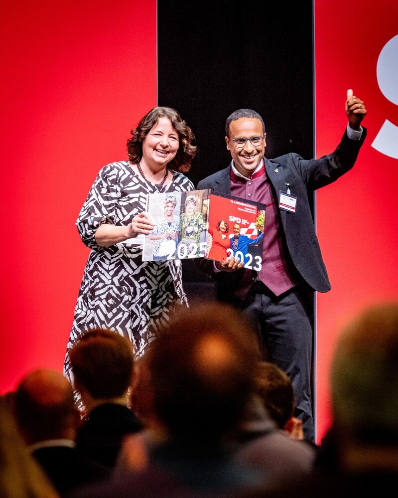„Abschied dahoam“ – unter diesem Motto stand der 75. Landesparteitag der BayernSPD in Landshut für die Generalsekretärin der BayernSPD, Ruth Müller am vergangenen Wochenende. Wie berichtet, hat sich Müller dazu entschlossen, nicht mehr als Generalsekretärin anzutreten, weil sie bei der Kommunalwahl im März 2026 Landrätin im Landkreis Landshut werden möchte. Generalsekretäre eröffnen traditionell die Parteitage und ihnen obliegt es auch, eine Reihe von Ehrengästen zu begrüßen und einige politische Schwerpunkte zu setzen. Dabei ging Ruth Müller auf ihre Kandidatur als Landrätin ein und bedankte sich mit einem Fotobuch mit Bildern aus ihrer gemeinsamen Amtszeit auch bei ihrem Stellvertreter Dr. Nasser Ahmed, der ebenfalls sein Amt niederlegte, um in Nürnberg SPD-Oberbürgermeister zu werden: „Wir wollen uns beide darauf konzentrieren, wo unser Herz schlägt - für den Landkreis Landshut und für Nürnberg“, so Müller. „Ich will im Landkreis Landshut Landrätin werden, und mich um das Leben der Menschen in unserer Region kümmern. Damit es auch weiterhin eine gute Gesundheitsversorgung mit kurzen Wegen und gute Bildungsangebote für alle Generationen gibt“. Müller, die selbst 30 Jahre in der Privatwirtschaft gearbeitet hat, kündigte an, die Wirtschaftspolitik wieder zur Chefsache zu machen. Denn sie wisse, wie wichtig politische Rahmenbedingungen sind, um Vertrauen und Stabilität in den Wirtschaftsstandort zu stärken. Ihr Wissen und Können aus fast 30 Jahren Kommunalpolitik, zwölf Jahren im Bayerischen Landtag und die Führungserfahrung der letzten Jahre als Generalsekretärin wolle sie an der Spitze des Landkreises umsetzen und dank ihrer besten Vernetzung auf Landes- und Bundesebene in die Region einbringen. Am 22. November stellt die SPD im Landkreis Landshut ihre Kreistagsliste auf und nominiert die Landratskandidatin.