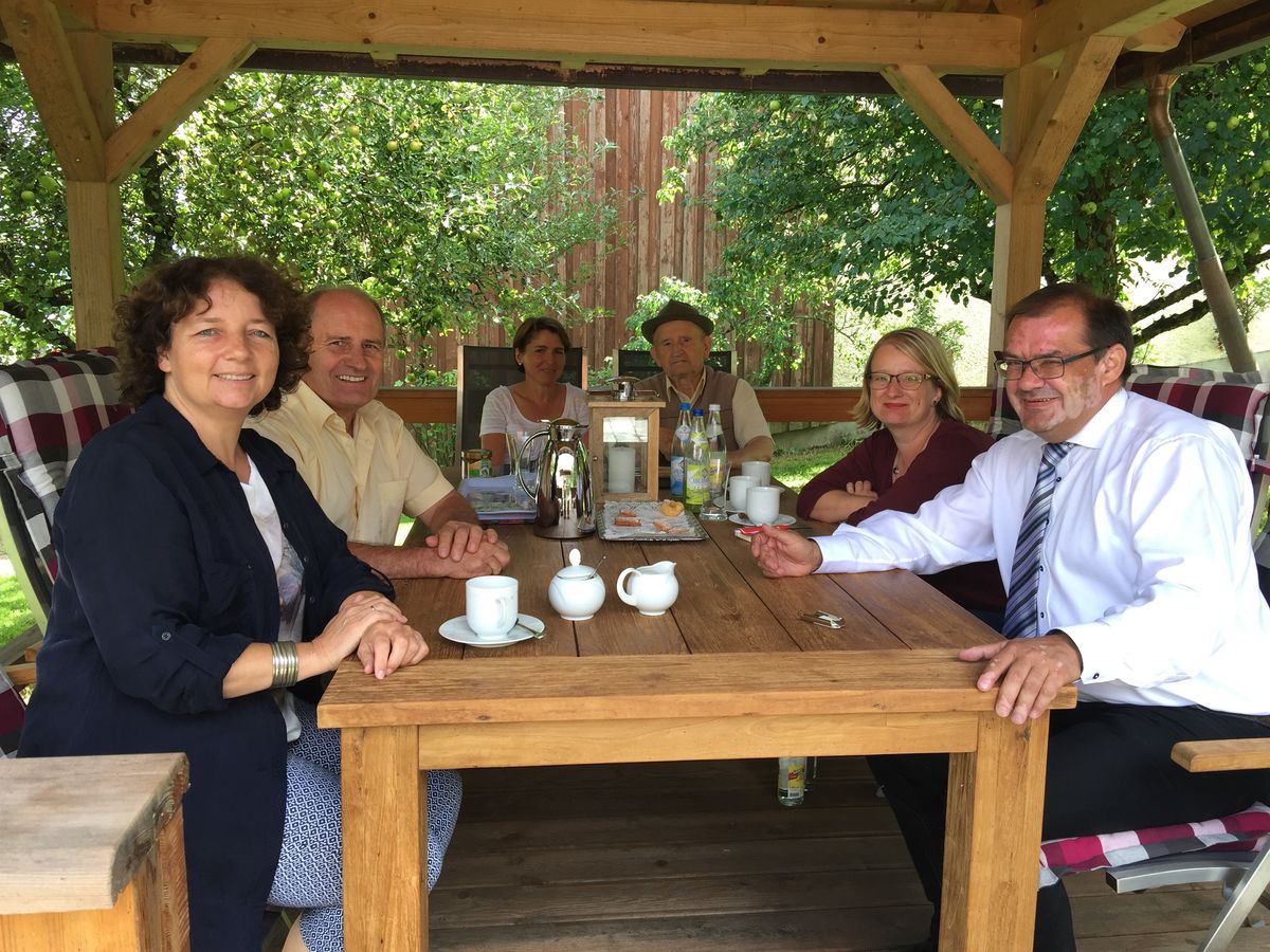 Palmberg/ Spiegelau. Der brandenburgische Minister für Ländliche Entwicklung, Umwelt und Landwirtschaft traf sich auf Einladung der SPD Landtagskandidatin Bettina Blöhm und der Landtagsabgeordneten Ruth Müller, die selbst Mitglied im Agrarausschuss des Bayerischen Landtags ist, zum agrarpolitischen Fachgespräch mit dem hiesigen BBV-Kreisobmann Hans Döringer auf dessen Hof in Palmberg.