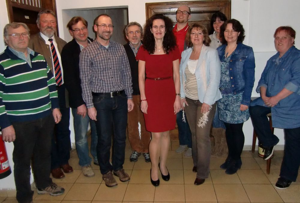 Foto: Die Gemeinderatskandidaten mit Bürgermeisterkandidatin Angelika Maria Thiel (Mitte) und den beiden Kreisräten Arno Wolf (2. v. l.) und Ruth Müller (2. v. r.)