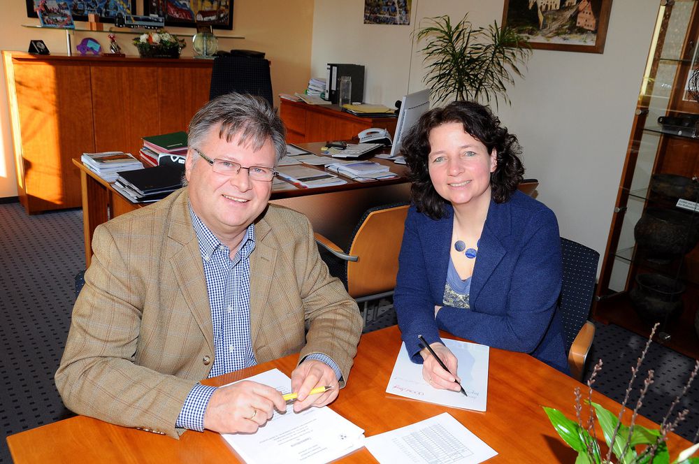 Bildunterschrift: Wollen für den Erhalt der Bucher Schule kämpfen: Bürgermeister Franz Göbl und MdL Ruth Müller.