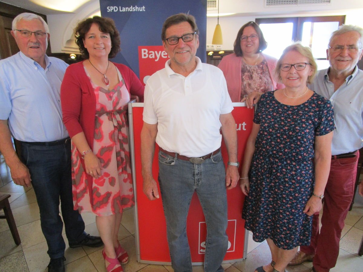 Bild: Bei der SPD-Arge „60 plus“: (v. l.) Kreisrat Gerhard Babl, MdL Ruth Müller, Stadtrat Gerd Steinberger, Bezirkstagskandidatin Christine Erbinger, Stadträtin Maria Haucke und Versammlungsleiter Rolf Haucke