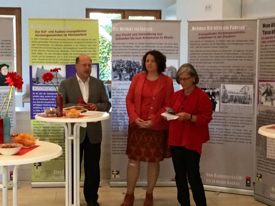 Ihre Kollegin Ruth Müller verstand als Kind einer evangelischen Familie mit Flüchtlingshintergrund nicht, „was das ist, Kommunion und Beichten und dass wir in getrennten Klassen unterrichtet wurden“. Wie die anderen Vertriebenen lebte auch sie in dem Neubaugebiet ihrer Heimatstadt, das abfällig „die Flüchtlingssiedlung“ genannt wurde. Ältere Gäste der Finissage, die als Kinder die Flucht noch erlebten, erinnern sich noch gut daran, „wie unwillkommen wir waren“. Beispiel genug für Ruth Müller, „dass es irgendwo auf dieser Welt immer Flucht und Vertreibung gab und geben wird, aber auch ein bisschen Glück geben muss.“