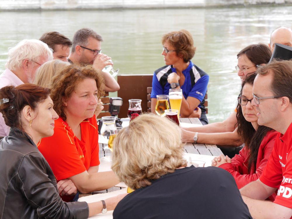Eine Stunde dauerte der Aufenthalt auf dem Gastro-Floß. Dann forderte Ruth Müller in Anspielung auf das nächste Ziel der Etappe auf: „BMW“. Gut Bairisch für „Back ma’s wieder“.