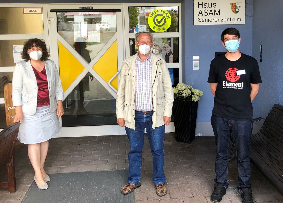 Bildunterschrift v. l. n. r.: Ruth Müller (MdL), Gemeinderat Georg Riedl, Pflegedienstleiter Martin Valek