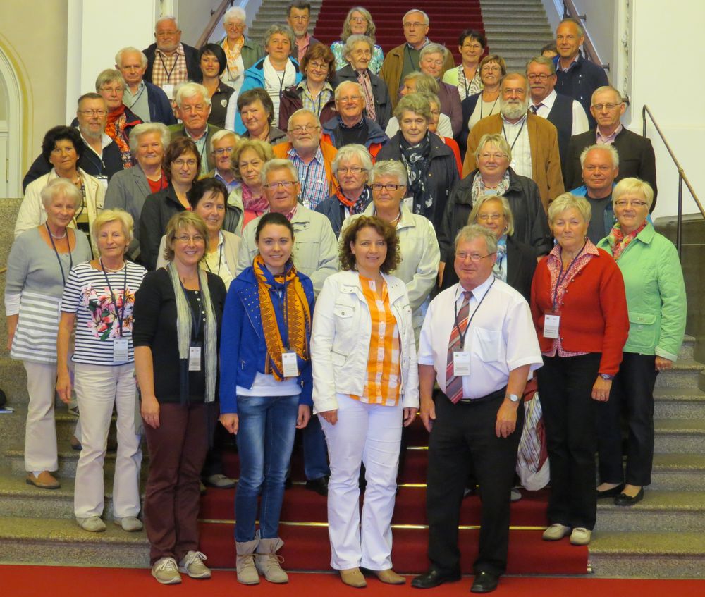 Bildunterschrift: Die Besuchergruppe um den Zweiten Bürgermeister Hans Sarcher (vorderste Reihe, 4. von links) diskutierte angeregt mit der Fraktionsvorsitzenden Ruth Müller (3. von links).