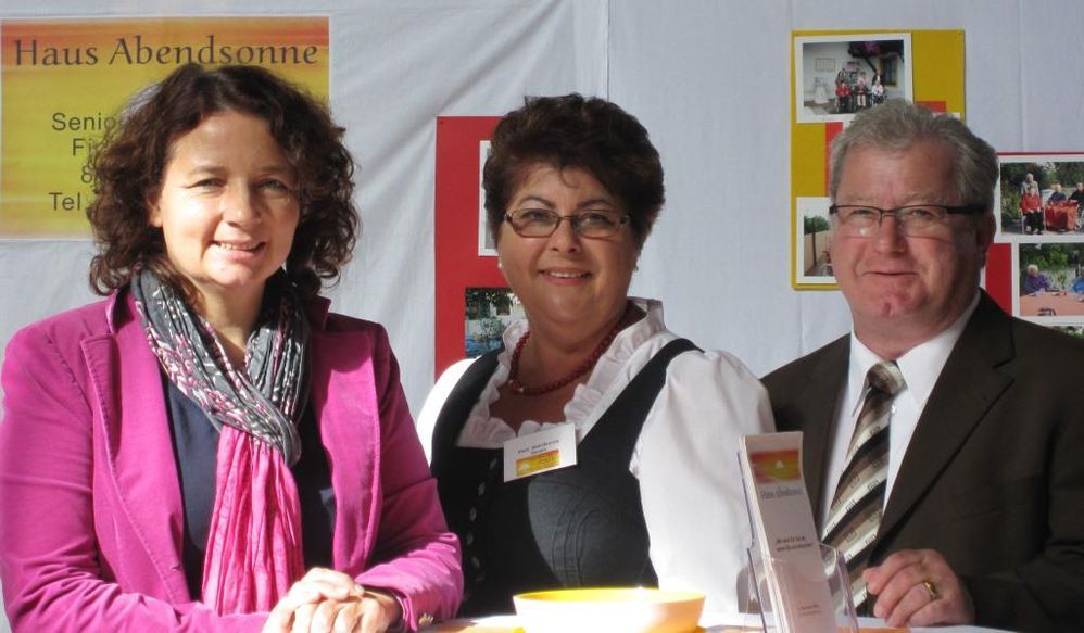 Die Frau des Bayerischen Ministerpräsidenten, Karin Seehofer hatte die Schirmherrschaft übernommen und eröffnete die Gesundheitstage in Vilsbiburg. Zusammen mit den Kreisräten und Bürgermeistern des Landkreises besuchte man die Aussteller in der Halle. Die Landshuter Landtagsabgeordnete Ruth Müller statte zusammen mit stv. Bürgermeister Hans Sarcher auch Marianne Bulin vom "Haus Abendsonne" in Gerzen einen Besuch ab. Kennengelernt hatte man sich bei einer Veranstaltung zur Pflege in Frontenhausen, zu der die beiden Abgeordneten Florian Pronold und Ruth Müller im Frühjahr eingeladen hatten. Im "Haus Abendsonne" wird in familiärer Atmosphäre Tagesbetreuung und Verhinderungspflege angeboten, berichtete Marianne Bulin.
