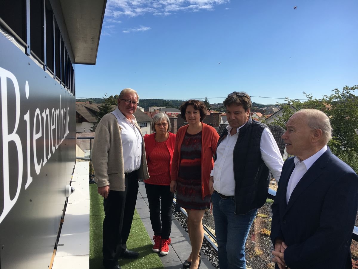 Die Bienen von acht Völkern schwirren um die beiden Landtagsabgeordneten Ruth Müller und Johanna Werner-Muggendorfer und den Kreisrat Karsten Wettberg. Die SPD-Politiker sind nach Mainburg in das von der Firma Pinsker Druck und Medien betriebene „Bienenhaus“ gekommen, um sich von den beiden Experten Thomas Scharlach und Martin Winterhalter vom Bienenzucht- und Obstbauverein Enzelhausen über die Lage der Imkerei in und um Mainburg informieren zu lassen.