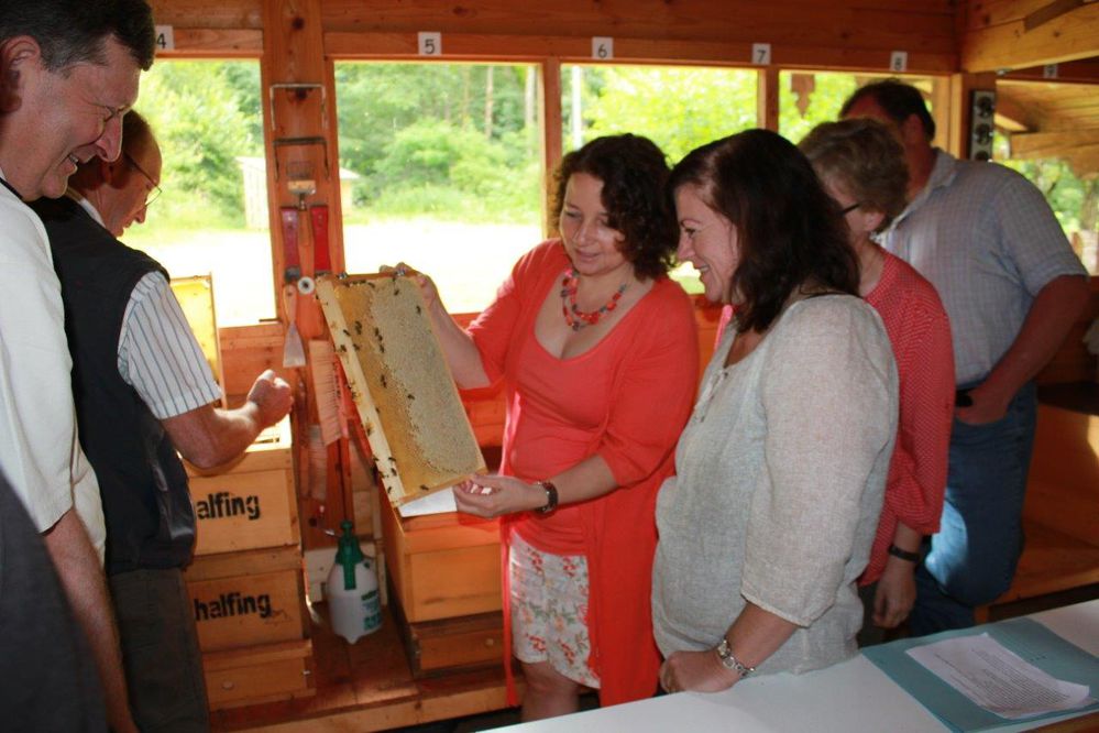 Am Lehrbienenstand in Halfing traf man sich zum Austausch. Begrüßt wurden die SPD-Politikerinnen vom Vorsitzenden des Bienenzuchtvereins Halfing, Franz Pichler. Dieser stellte den Lehrbienenstand im Detail vor. Besonders werbe man um Neuimker, die unter fachkundiger Anleitung am Lehrbienenstand innerhalb von zwei Jahren lernen könnten, sich selbständig um Bienenvölker zu kümmern. Immer mehr Frauen würden inzwischen auch die Imkerei für sich entdecken. Pichler beschrieb die aktuellen Schwierigkeiten der Bienenhaltung. So habe die Verbreitung der Varroamilbe im vergangenen Jahr zum Verlust vieler Bienenvölker beigetragen. Bärbel Kofler würdigte das ehrenamtliche Engagement der Imker, die sich in ihrer Freizeit mit oft hohem Einsatz um ihre Bienenvölker und damit auch um den Erhalt der Pflanzenvielfalt kümmern. "Auf dem Bundestagsgelände haben wir deshalb vor kurzem ein Bienenvolk angesiedelt, um ein Zeichen dafür zu setzen, wie wichtig die Bienen für unsere Umwelt sind", so die Traunsteiner Abgeordnete. Auch rund um den Bayerischen Landtag summe es inzwischen, so MdL Ruth Müller. Sie betonte mit einem Augenzwinkern: "Wir haben sogar noch etwas mehr Bienen als im Bundestag in unseren Bienenkästen am Maximilianeum."