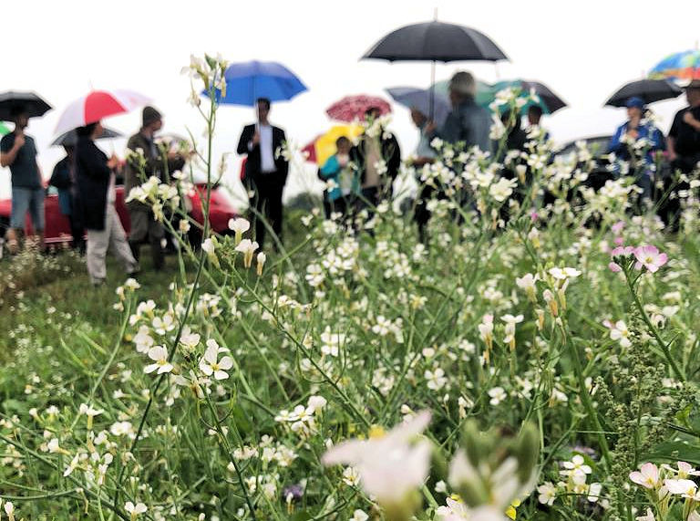 Der Regen war bei der Besichtigung eher unpraktisch, ist ansonsten jedoch für die Umwelt gut und nötig. Genau wie Blühwiesen, die als „Zwischenfrucht“ eine sinnvolle Alternative zur normalen Feldbewirtschaftung darstellen. Der Boden kann sich gut erholen und wird wieder auf die intensive Bewirtschaftung vorbereitet. Darüber hinaus entsteht auf der Blühwiese ein insektenfreundliches Biotop. Für diese umwelt- und tierfreundliche Zwischennutzung der Äcker gibt es sogar Fördermittel – ein Konzept, das hoffentlich viele Nachahmerinnen und Nachahmer finden wird.
