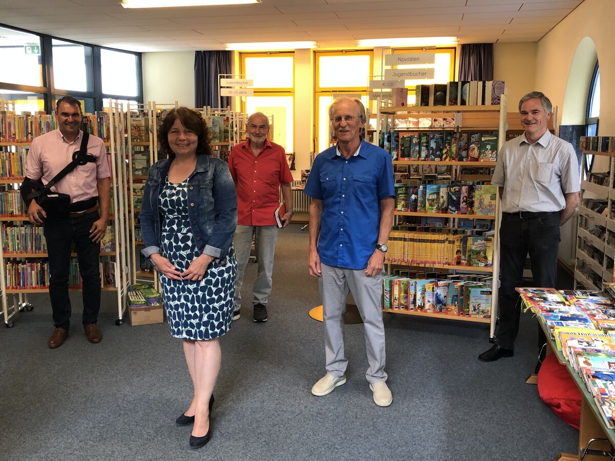 Neun Wochen waren die Büchereien in Bayern geschlossen, darunter auch die Pfarr- und Stadtbücherei in Rottenburg, die seit über 20 Jahren in den Räumlichkeiten bei der Grund- und Mittelschule untergebracht ist. Während Baumärkte und Friseure schon wieder öffnen durften, gab es für die Büchereien noch kein grünes Licht, erinnert Büchereileiter Bernhard Sotzny. Deshalb hatte er sich damals auch an die Pfeffenhausener Landtagsabgeordnete Ruth Müller mit der Bitte um Unterstützung gewandt. Seit 11. Mai ist die Bücherei nun wieder geöffnet und auch die Schüler und Schülerinnen seien froh gewesen, wieder neuen Lesestoff abholen zu können. Dass sich die Bücherei großer Resonanz erfreut, zeigt auch ein Blick in die aktuellen Zahlen, die Sotzny dabei hatte: Seit der Wieder-Öffnung am 11. Mai seien 88 Prozent der Vorjahres-Ausleiher wieder gekommen und bei den Ausleizahlen bewege man sich bei immerhin 96 Prozent des Vorjahreszeitraums. Möglich gemacht wurde das durch das große ehrenamtliche Engagement, die hervorragende Zusammenarbeit mit der Stadt Rottenburg und der Pfarrei Rottenburg, bedankte sich Sotzny bei Bürgermeister Holzner und Pfarrer Josef Pöschl.