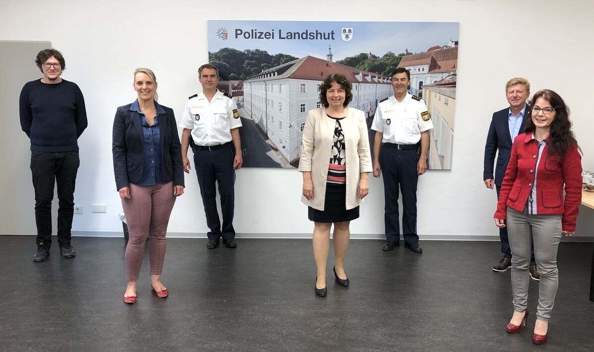 Im Vorfeld der nächsten Stellenzuteilungsrunde am 1. September besuchte die SPD-Landtagsabgeordnete Ruth Müller die Polizei-Inspektion Landshut, um sich ein Bild von der Personalsituation und der Arbeit der bayerischen Polizei in Corona-Zeiten zu machen. Der Leiter der PI Landshut, Helmut Eibensteiner und sein Stellvertreter Rainer Kroschwald begrüßten die Abgeordnete zusammen mit dem Leitenden Kriminaldirektor vom Polizeipräsidium Niederbayern in Straubing, Paul Mader. Mit dabei waren auch die Stadträtinnen Anja König, Patricia Steinberger sowie Falk Bräcklein.