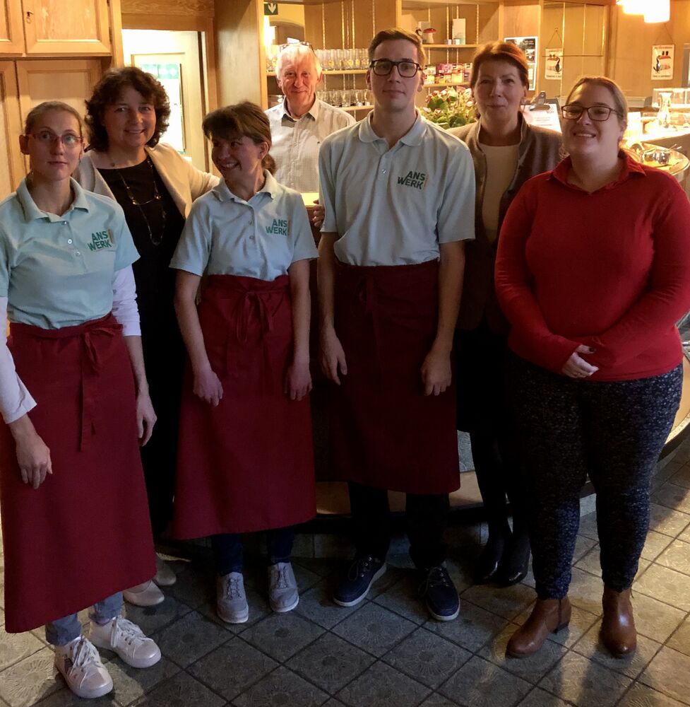 Seit fast 15 Jahren gibt es das „Bistro in der städtischen Musikschule“, das vom Verein „AnsWerk“ betrieben wird. Das Bistro ist eine von sechs Einrichtungen, die dazu beiträgt, dass die Inklusion von Menschen mit Beeinträchtigung im Arbeitsleben Wirklichkeit wird. Wie sich das in der Realität umsetzen lässt, wollte die Landshuter Landtagsabgeordnete Ruth Müller bei ihrem Besuch im Bistro wissen. Die Vorsitzende des Vereins, Ingrid Roederstein erläuterte zusammen mit der Sozialpädagogin Vera Mai das Konzept: „Bei uns finden 18 junge Menschen eine Arbeitsmöglichkeit im Bereich von Service oder der Küche“, erläuterte Roederstein. Die festangestellten jungen Menschen werden von qualifizierten Mitarbeitern und ehrenamtlichen Helfern aus den verschiedensten Berufsgruppen angeleitet und gefördert. Täglich werden von AnsWerk Krippen, Kindergärten und Horte mit Mahlzeiten versorgt, die frisch gekocht werden. Bekannt ist AnsWerk überdies von vielen Veranstaltungen in und um Landshut, wo das Catering übernommen wird.