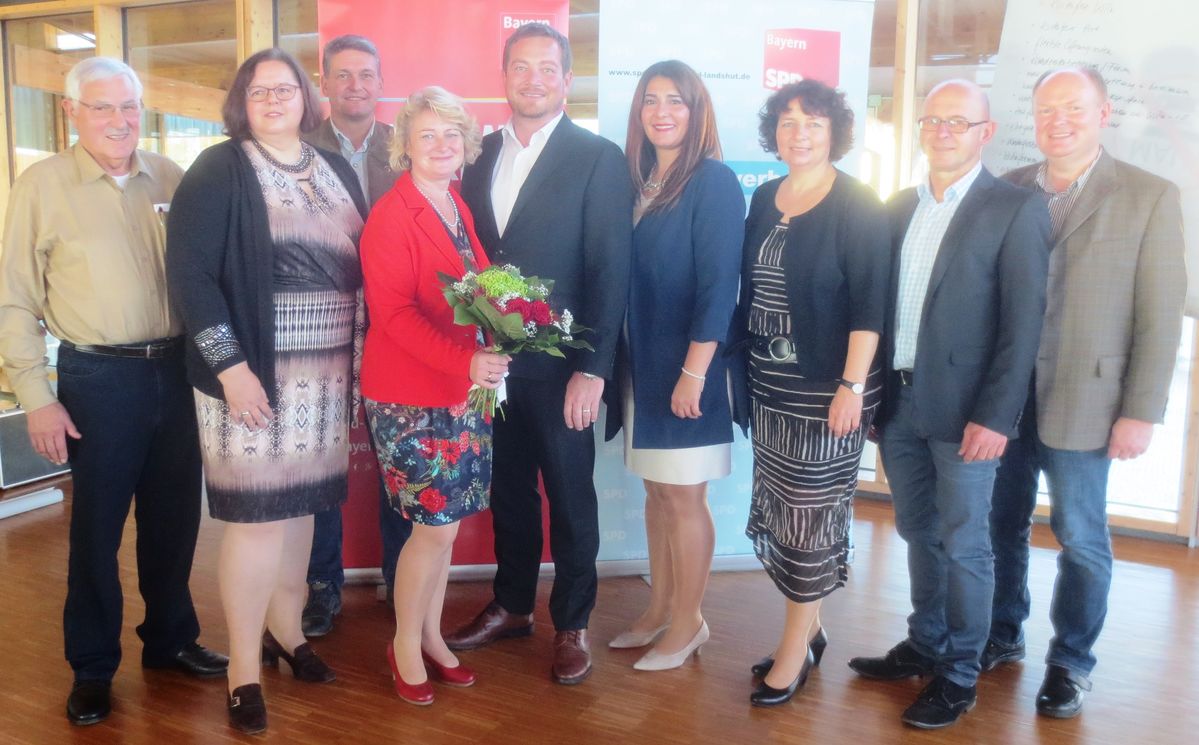 Gerhard Babl, stv. Kreisvorsitzender, Christine Erbinger, Peter Forstner, stv. Kreisvorsitzender, Rita Hagl-Kehl, MdB und Uli Grötsch, MdB, Filiz Cetin, Kreisrätin, Ruth Müller, MdL und Kreisvorsitzende, Sebastian Hutzenthaler, stv. Kreisvorsitzender und Bernd Vilsmeier, stv. Bezirksvorsitzender SPD Niederbayern
