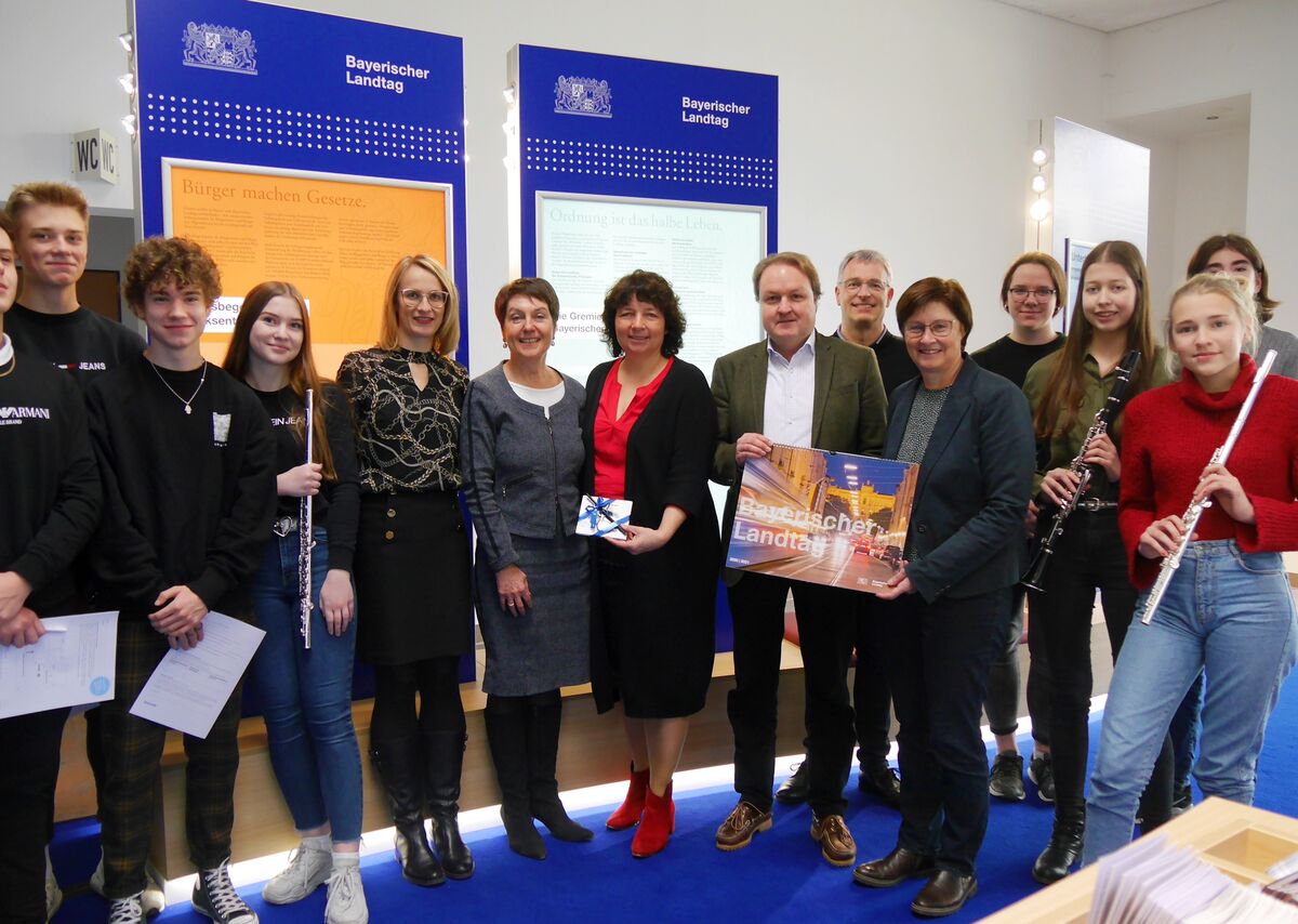 In Zeiten zunehmender Politikverdrossenheit ist politische Bildung und das Schaffen eines demokratischen Bewusstseins wichtiger denn je. Am Gymnasium Seligenthal wird politische Bildung mit dem sozialwissenschaftlichen Zweig sehr intensiv vermittelt. Aber auch die anderen Klassen, die noch keinen Politikunterricht haben, können beim Besuch der Wanderausstellung ihr politisches Wissen vertiefen. Dafür hat der Landtag ein sehr gut ausgefeiltes Quiz zur Verfügung gestellt, das die Schülerinnen und Schüler durch die Ausstellung begleitet. Die Schüler erwartet eine sehr interaktive Schulstunde mit verschiedenen Medien, die Politik wirklich hautnah erleben und begreifen ließen. Bei der Ausstellungseröffnung sogar mit Informationen aus erster Hand, denn die drei Landshuter Landtagsabgeordneten Ruth Müller, Rosi Steinberger und Helmut Radlmeier besuchten zusammen mit den Schülerinnen und Schülern der Klassen 10a und 10d die Ausstellung und standen für zahlreiche Fragen beispielsweise nach dem Alltag der Abgeordneten und für Diskussionen zur Verfügung.