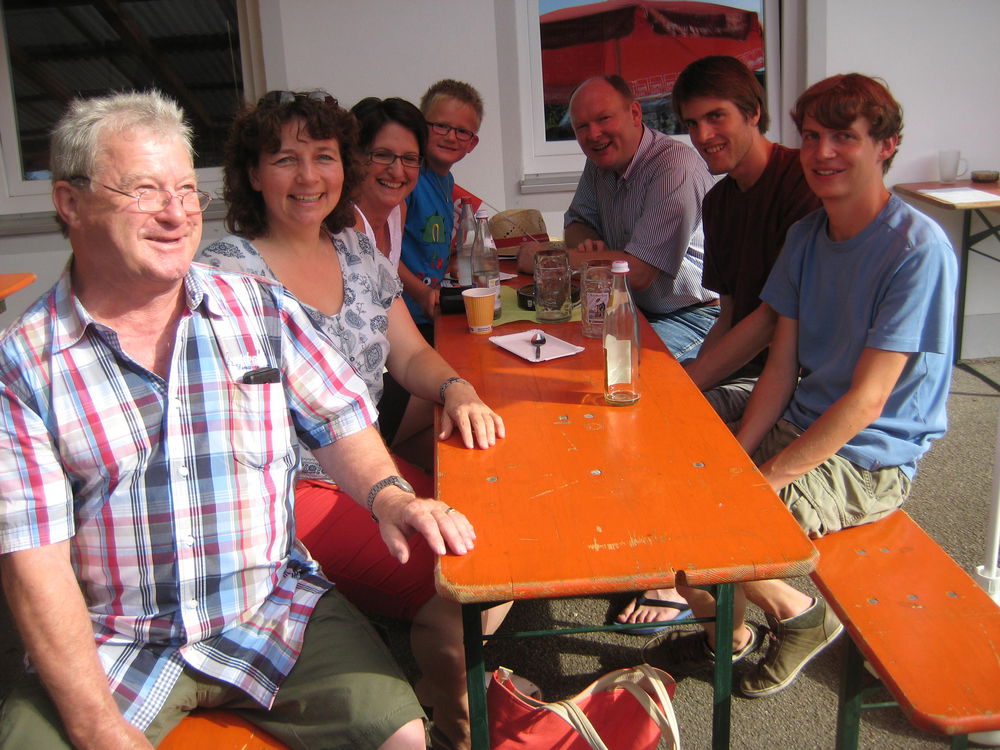 Durch die vielen Kuchenspenden stand den Besuchern ein reichhaltiges Kuchenbuffet zur Auswahl. Wegen der nachmittäglichen Hitze wurden die Kuchen mehr als Nachtisch am Abend genossen. Richtige Biergartenstimmung kam auf, als das Küchenteam leckeres Gyros zubereitete. Daneben gab es natürlich auch Bratwürste und Koteletts vom Grill mit verschie-denen Salaten. So war es nicht verwunderlich, dass sich die zahlreichen Gäste bis spät in die Nacht hinein am Verkehrsgartenfest aufhielten und sich bestens unterhielten.