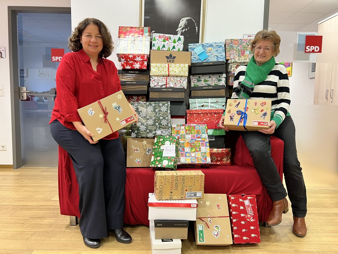 Abgeordneten Nicole Bauer und Ruth Müller, verschaffen Spender Kindern in armen Verhält-nissen und in Not eine Freude zum Weihnachtsfest. Die Kinder finden neben Dingen wie Hygieneartikeln, Handschuhen und Mützen ein Geschenk wie Malsachen und Spielzeug in ihrem Päckchen. Über 100 Schuhkartons wurden in den Abgeordnetenbüros abgegeben und werden nun von Mathilde Haindl und Helferinnen für den Transport nach Osteuropa fertig gemacht. „Am Ziel werden sie dann hoffentlich für strahlende Kinderaugen sorgen“, sagt Ruth Müller. „Es ist toll zu sehen, wie viele Gedanken sich die Menschen machen und wie liebevoll die Geschenke gepackt und verziert sind. Gerne würde ich einmal bei der Übergabe Mäuschen spielen“, so die SPD-Landtagsabgeordnete weiter. „Nicht für alle Kinder ist es selbstverständlich, ein Geschenk unter dem Weihnachtsbaum zu finden. Aber die Kleinsten sind es doch, die dem Weihnachtsfest am meisten entgegenfiebern“, sagt Nicole Bauer, „Es freut mich, dass wieder so viele Menschen mit ihren Paketen die Aktion unterstützen und wir den Kindern so eine Freude bereiten können.“ Auch Mathilde Haindl ist dankbar für die vielen liebevoll ge-packten Kartons der Menschen aus der Region und die Unterstützung aus den beiden Abgeordnetenbüros und freut sich schon auf nächstes Jahr, wenn es wieder heißt: Die Annahme-stellen sind bereit.