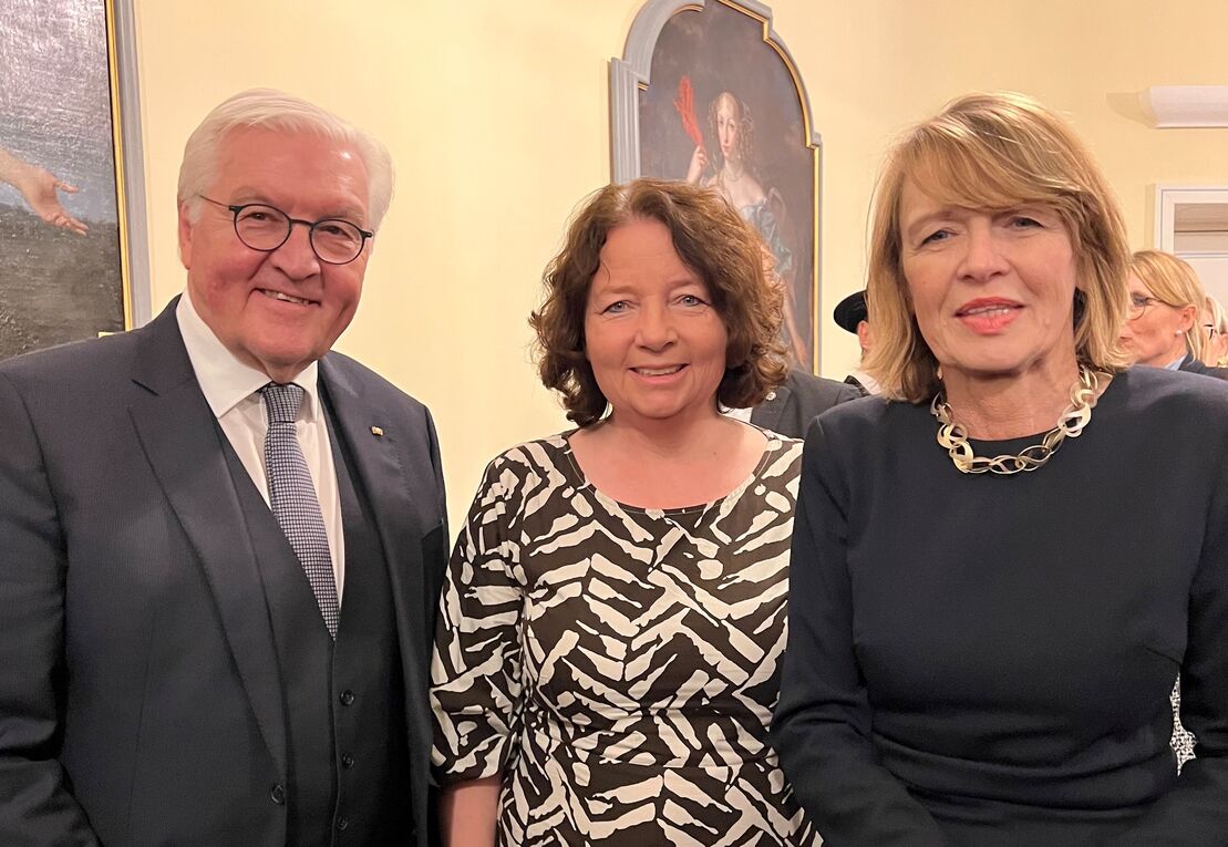 Im Anschluss an den Gedenkakt kam Ruth Müller mit dem Bundespräsidenten, den sie noch aus seiner Zeit als Bundesaußenminister kennt, ins Gespräch. Dabei ging es auch um die Bedeutung einer lebendigen Erinnerungskultur – gerade vor dem Hintergrund aktueller Kriege und weltweiter Fluchtbewegungen.