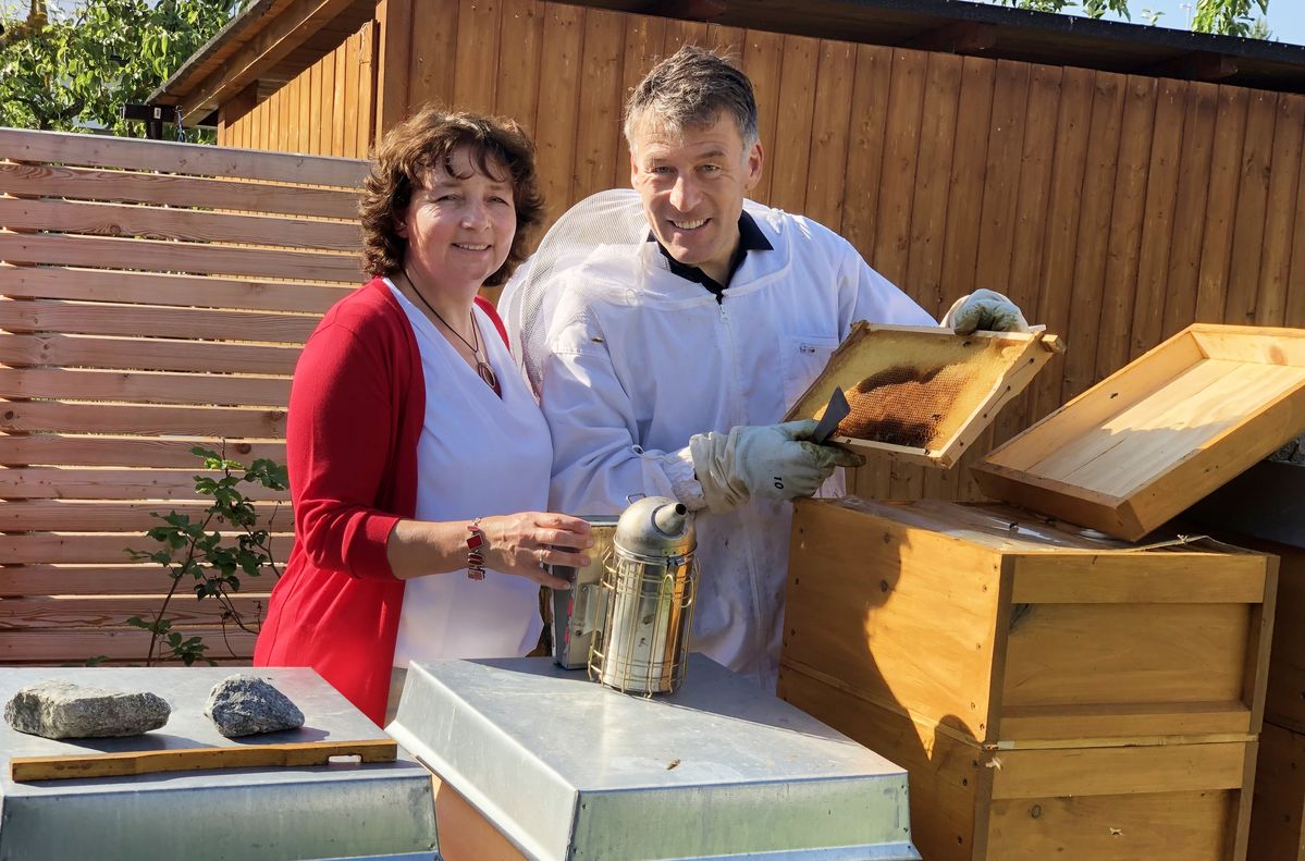 Imkereipolitikerin Ruth Müller besucht Straubinger "Jungimker" Günter Reimann