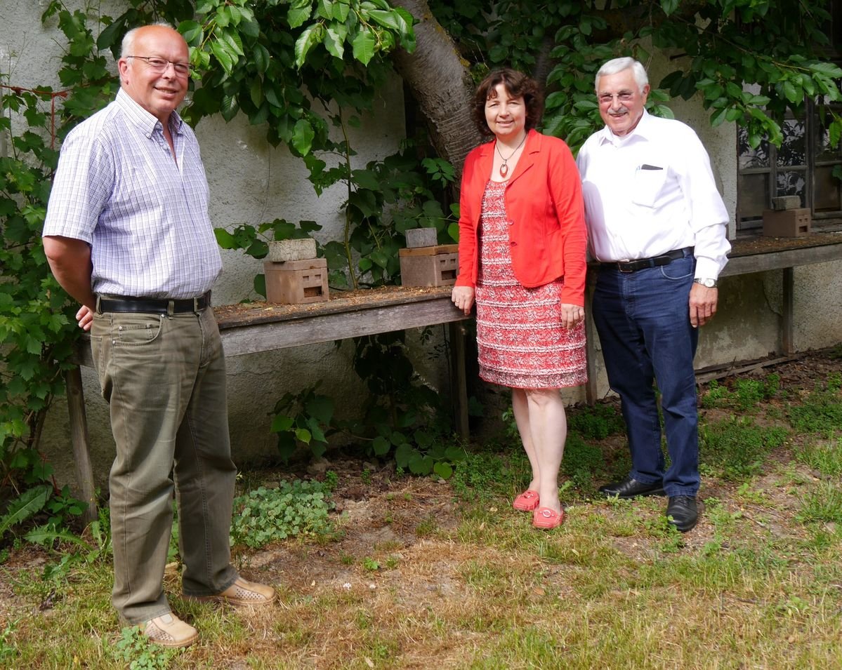 Bildunterschrift: Ruth Müller, MdL (Mitte) besuchte mit Kreisrat Gerhard Babl (re.) Imker Josef Lanzinger in Velden