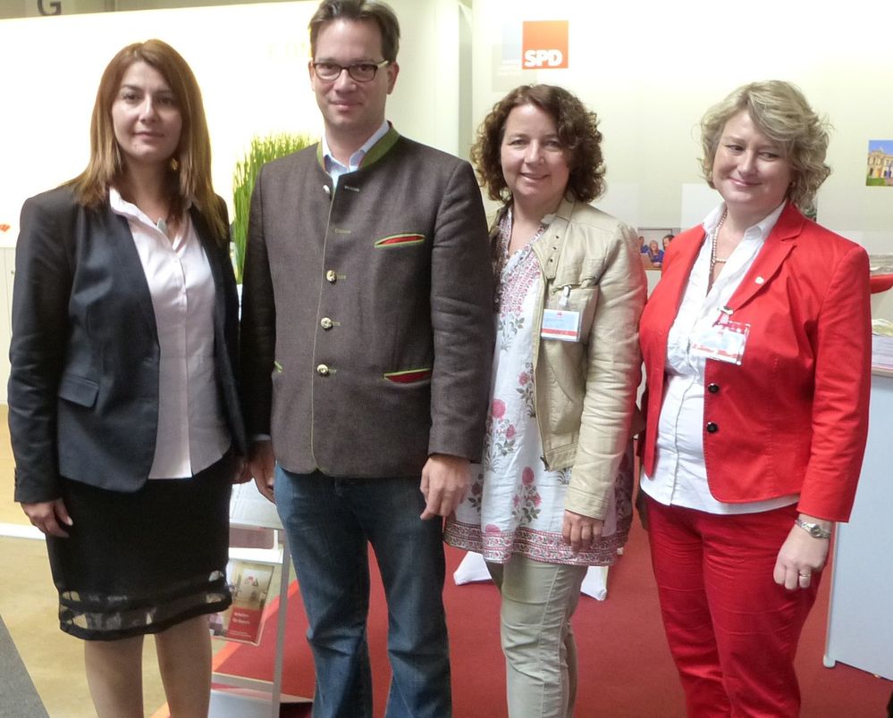 Der Niederbayer Florian Pronold, der seit 2009 Landesvorsitzender ist, wurde am Samstag mit 63,3 Prozent der Stimmen bestätigt, im Anschluss fanden die Wahlen der Stellvertreter statt. Am Sonntag wurden die Beisitzer-Wahlen durchgeführt und hier trat für die SPD Niederbayern auch die Essenbacher Kreisrätin Filiz Cetin an. Die 39jährige, die erst im vergangenen Jahr als Bürgermeisterin kandidierte und in den Kreis- und Gemeinderat gewählt wurde, schaffte es auf Anhieb, sich unter den 31 Kandidaturen einen der 24 Beisitzer-Plätze zu sichern – noch dazu mit einem hervorragenden Ergebnis von 142 Stimmen, womit sie auf dem 13. Platz landete. In ihrer Rede betonte sie ihr kommunalpolitisches Interesse und ihr Engagement im SoFIA-Projekt, an dem sie 2012 und 2013 teilgenommen hatte. Die Pfeffenhausener Landtagsabgeordnete Ruth Müller hatte sich damals als Mentorin zur Verfügung gestellt, um junge Frauen für die Politik zu coachen und aufzubauen. So war Müller auch die erste, die Filiz Cetin zu ihrem Ergebnis gratulierte. „Erstmals ist jemand aus dem Landkreis Landshut im Landesvorstand vertreten“, freute sich Müller. Der Landesvorsitzende Florian Pronold und die Bundestagsabgeordnete Rita Hagl-Kehl, die den Stimmkreis Landshut betreut, gratulierten Cetin zu ihrer Wahl in den Landesvorstand. „Wir haben mit Dir eine starke niederbayerische Vertretung in diesem Gremium“ waren sie sich sicher. „Das überragende Ergebnis motiviert mich sehr. Ich freue mich auf meine neue Aufgabe als Beisitzerin im Landesvorstand und werde meinen Teil dazu beitragen in Bayern für andere Mehrheitsverhältnisse zu sorgen.