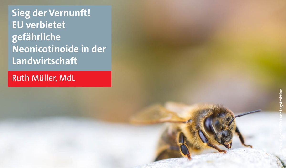 Die bienenpolitische Sprecherin der BayernSPD-Landtagsfraktion Ruth Müller begrüßt die Entscheidung der EU, den Einsatz sogenannter Neonicotonoide zu verbieten. "Seit langem ist bekannt, dass diese Insektizide insbesondere bei Wild- und Honigbienen, aber auch Hummeln und Schmetterlingen schwerwiegende Schäden verursachen", mahnt Müller.
