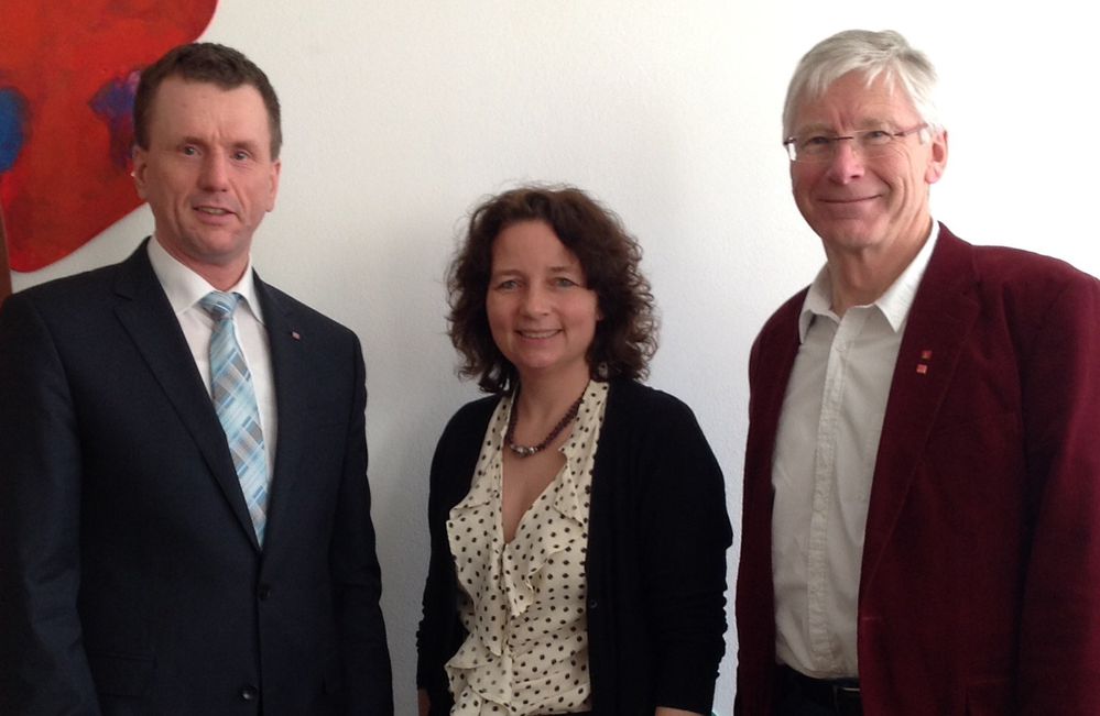 „Den Bürgerinnen und Bürger der aufstrebenden Gemeinde Essenbach soll wieder eine Bahnverbindung ermöglicht werden. Zwei Zugstrecken – München- Regensburg und München- Passau - liegen im Gemeindegebiet und die Bürgerinnen und Bürger haben keine Möglichkeit, am Ort einzusteigen“, umriss die Landshuter Abgeordnete Ruth Müller ihr Anliegen. Insgesamt lebten rund 11.600 Menschen in der großen Gemeinde und rechne man auch noch die Bürgerinnen und Bürger aus der Gemeinde Hohenthann mit 3.850 Personen dazu, könne man mit beiden Bahnhaltepunkten 15.500 Menschen erreichen. Über ein Vierteljahrhundert sei es her, dass die Bahnhaltestellen in Essenbach geschlossen worden sei, so Ruth Müller weiter. „Zwischenzeitlich hat sich – auch durch die steigenden Spritpreisen – das Mobilitätsdenken der Menschen verändert. Deshalb fragten wir den Bevollmächtigten für Bayern der DB AG, Herrn Klaus-Dieter Josel, wie die DB AG die Realisierung einschätzt, falls die Haltestellen neu von der Bayerischen Eisenbahngesellschaft (BEG) bestellt werden würden“, ergänzte Bernhard Roos, MdL. Die BEG plant im Auftrag des Freistaats Bayern die Leistungen des bayerischen Regionalverkehrs und ist dem Bayerischen Wirtschaftsministerium unterstellt. Klaus-Dieter Josel von der DB AG informierte die beiden Abgeordneten, dass in Bayern in den letzten Jahren über 50 neue Haltepunkte reaktiviert wurden. Die Bayerische Eisenbahngesellschaft müsse vorab erkunden, ob ein neuer Haltepunkt sinnvoll sei und dann die DB AG beauftragen, eine solchen einzurichten – „das wird wohl nicht vor 2019 passieren“, so der DB-Bevollmächtigte und ließ auch gleich die Begründung folgen: „Priorität hat im Moment eine Verbesserung der gesamten Infrastruktur - d.h. Zweigleisiger Ausbau der Strecke Plattling-München