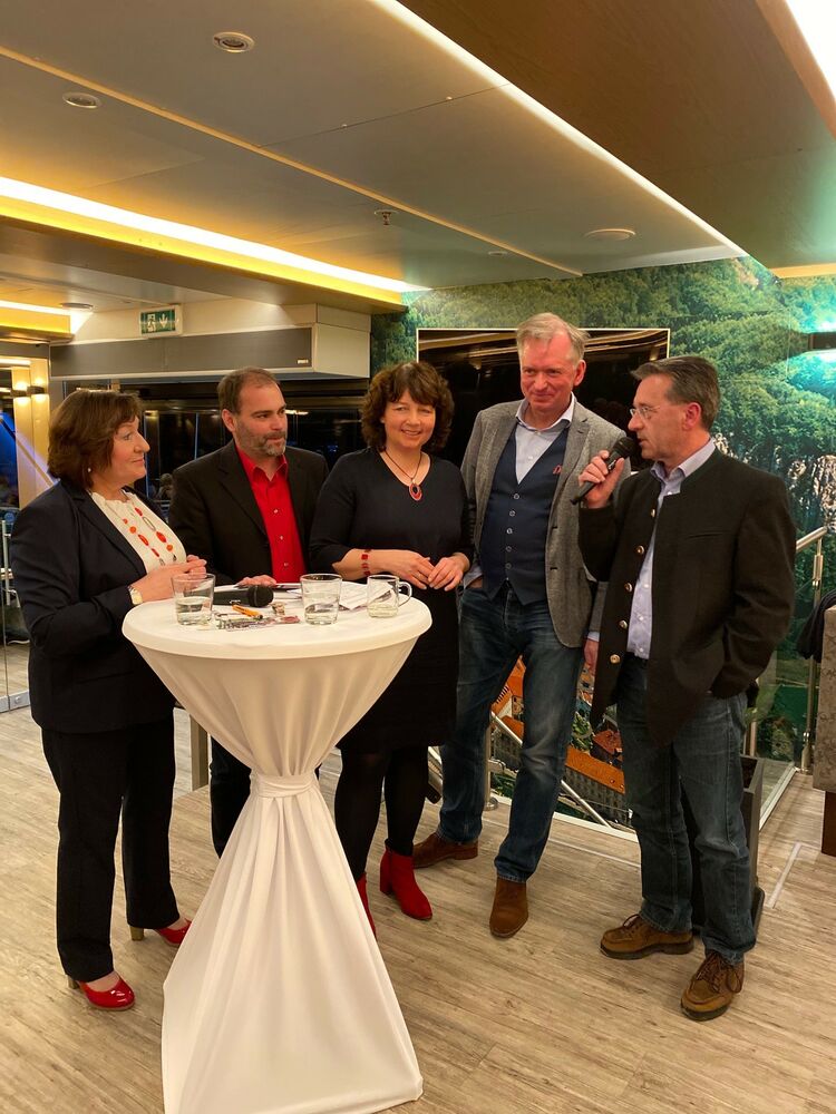 Vollends zufrieden zeigte sich die Organisatorin Maria Meixner vom Zuspruch des Frauenempfangs der SPD Kelheim am Unsinnigen Donnerstag auf der MS Renate. Landratskandidat Stephan Schweiger war einer der wenigen Männer unter den 200 Gästen auf dem Schiff und freute sich über den Gast aus München. Dass die Mischung Politik und Kabarett bestens funktioniert, bewiesen dann die beiden Protagonisten des Abends: der Kabarettist und Autor Christian Springer und die Landtagsabgeordnete Ruth Müller. Humorvoll, satirisch und mit viel Wortwitz spielten sich die beiden die Bälle zu, die abwechselnd witzig und ernsthaft beantwortet wurden. Was die beiden trotz der unterschiedlichen Berufe verbindet, ist neben dem gemeinsamen Geburtsort München auch eine gewisse Hartnäckigkeit. Bei Springer liegt es am Sternzeichen Steinbock und bei Müller an ihrer politischen Grundeinstellung, dass sie erst dann mit einem Ergebnis zufrieden ist, wenn es gut ist. Bei dem Thema „Werte“ waren sich die beiden schnell einig, dass vermeintliche altmodische Werte wie Hilfsbereitschaft, Rücksichtnahme, Zuverlässigkeit und Verantwortungsgefühl auch heute noch wichtige Werte seien, die das Zusammenleben „g´schmeidiger“ machen. Obwohl er kein Taschenmesser in der Hosentasche trage, empfinde sich Springer als „anständiger Bayer“, wenn halt auch als leidenschaftlicher Oberbayer. Was ihn aber nicht davon abhielt, auch nach Niederbayern zu fahren, um im Rahmen dieser politisch-unterhaltsamen Veranstaltung seine Arbeit bei den Orienthelfern vorzustellen. Am Ende des Abends bedankte sich Bürgermeister Horst Hartmann für den gelungenen Abend und legte sein besonderes Augenmerk auf die Bildungsarbeit für Kinder und Frauen, die die Orienthelfer leisten, für die am Ende der Veranstaltung dann auch einige Spenden eingingen. Wer den Verein „Orienthelfer e. V.“ unterstützen möchte, kann dies bei der Stadtsparkasse München mit IBAN DE92 7015 0000 0000 5741 11 tun.