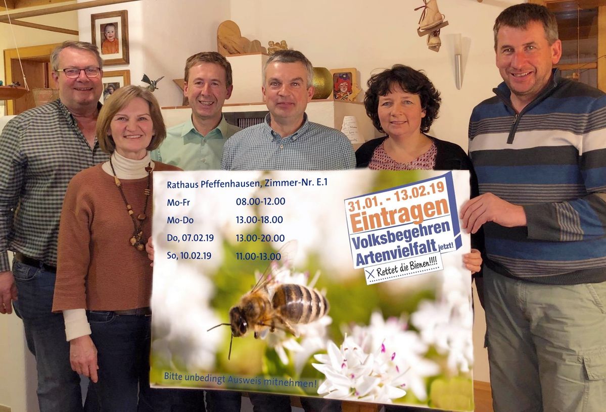 Ab 31. Januar läuft die zweiwöchige Eintragungsfrist für das Volksbegehren „Rettet die Bienen“. Rund eine Million Bürgerinnen und Bürger müssen sich bis 13. Februar in die Unterschriftenlisten in den bayerischen Rathäusern eintragen, damit das zehnprozentige Quorum erfüllt ist und das Volksbegehren erfolgreich wird. Unterstützt wird das Volksbegehren von einem breiten Bündnis aus Parteien, Organisationen und Verbänden wie beispielsweise den Imkern. In der Gemeinde Pfeffenhausen rufen die Freien Wähler, die SPD und die Grünen zur Unterstützung des Volksbegehrens auf. Die Biene liegt dem Menschen als Nutztier am Herzen, aber sie steht nur exemplarisch für eine Vielzahl von bedrohten Arten bei Tieren und Pflanzen, die alle ein Teil der Nahrungskette sind, erläuterte die Pfeffenhausener Landtagsabgeordnete Ruth Müller (SPD) bei dem Treffen. Ziel des Volksbegehrens ist es, das Bayerische Naturschutzgesetz anzupassen, um den Rückgang der Arten aufzuhalten.