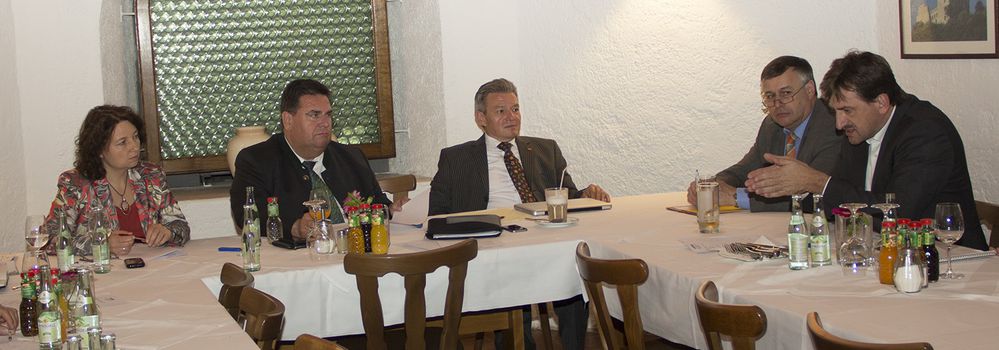 Foto: Gedankenaustausch im Landtag: (v.l.) Die SPD-Abgeordneten Ruth Müller, Herbert Woerlein und Horst Arnold im Gespräch mit BBV-Präsident Walter Heidl und BBV-Vizepräsident Günther Feißner
