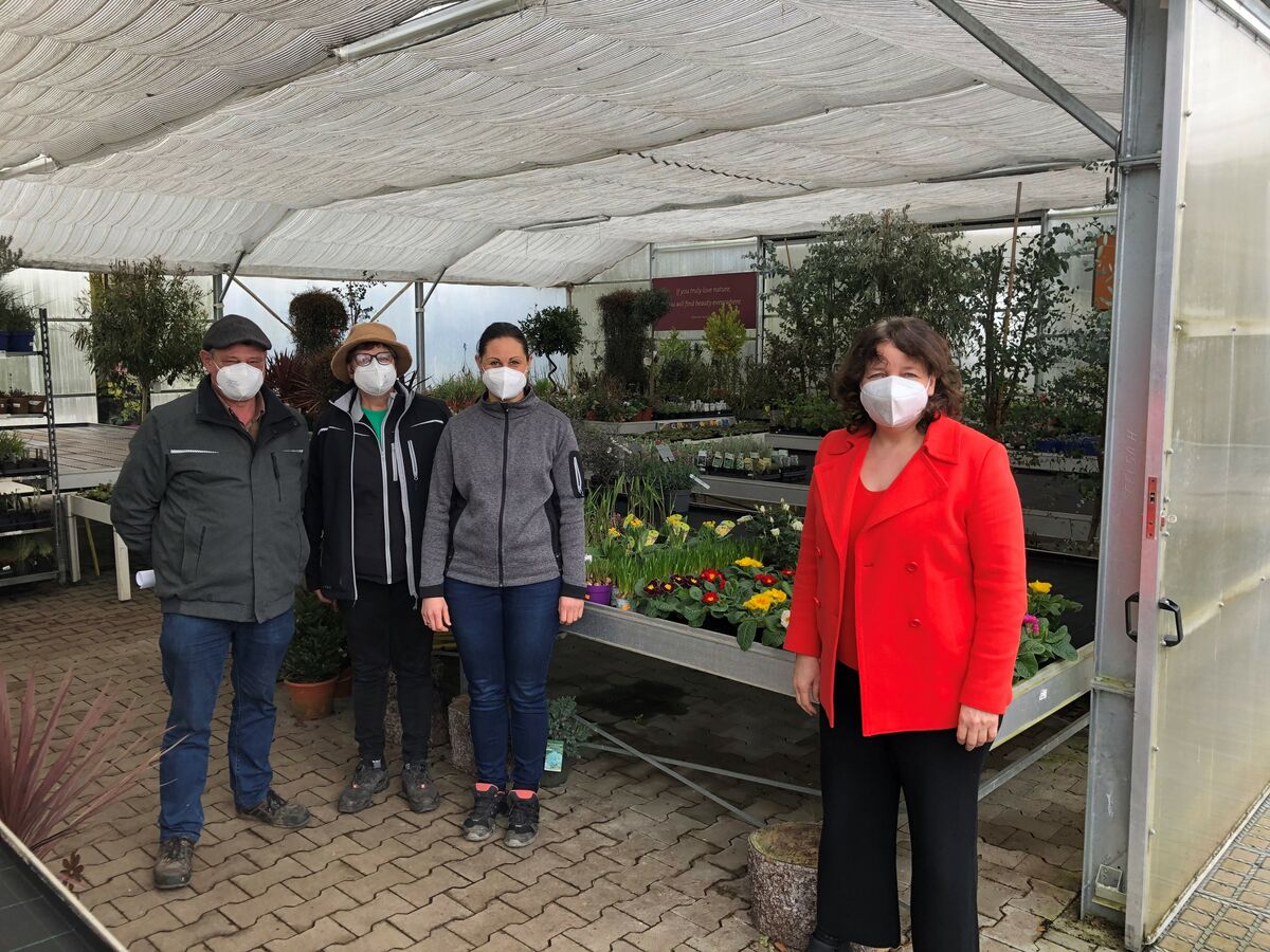 „Geduld ist die größte Tugend des Gärtners“, zitierte Heidi Patzlsperger eine bekannte Weisheit beim Besuch der SPD-Landtagsabgeordneten Ruth Müller. Aber die Geduld der Gärtnereien und Baumschulen werde im Moment schon arg strapaziert, machten Eduard und Heidi Patzlsperger zusammen mit Tochter Elke Wimmer beim Gespräch mit der Abgeordneten deutlich. Die Winterpause habe man zwar gut für Auf- und Umräumarbeiten genutzt, wie jedes Jahr. Aber nun stehe man in den Startlöchern und sehe keine Öffnungsperspektive.