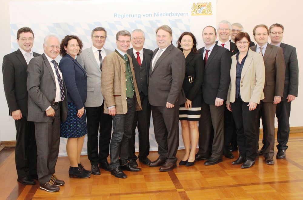 Bildunterschrift: Erfahrungsaustausch an der Regierung von Niederbayern, von links MdL Max Gibis, Staatsminister a.D. Erwin Huber, MdL Ruth Müller, MdL Alexander Muthmann, Staatssekretär Bernd Sibler, Regierungspräsident Heinz Grunwald, Staatsminister Helmut Brunner, MdL Jutta Widmann, MdL Hubert Aiwanger, MdL Bernhard Roos, MdL Rosi Steinberger, im Hintergrund Regierungsvizepräsident Dr. Helmut Graf, MdL Helmut Radlmeier, MdL Josef Zellmeier; Foto: Regierung von Niederbayern