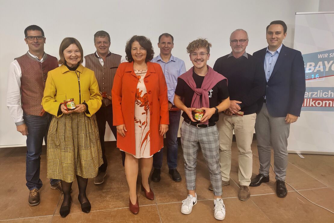 Ruth Müller, Landtagsabgeordnete, stellvertretende Fraktionsvorsitzende und imkereipolitische Sprecherin hatte alle bieneninteressierten Niederbayern ins Kulturforum nach Oberalteich im Landkreis Straubing-Bogen eingeladen, um ein Fazit zu ziehen, wo Bayern drei Jahre nach dem Volksbegehren „Rettet die Bienen“ steht. Im Fokus stand dabei, in welchen Bereichen bereits gute Erfolge erzielt worden sind und wo versäumt worden ist, von der Theorie in die Praxis zu gehen. Im Dialog mit ihrer Landtagskollegin aus Regensburg, Margit Wild, nahm Müller den Status Quo in Sachen bayerischer Artenschutz unter die Lupe. Müller kritisierte besonders das langsame Tempo bei der Umsetzung der beschlossenen Maßnahmen, die zu wenigen Biodiversitätsberater in Bayern sowie die Abwälzung der Verantwortung bei der Umsetzung der sogenannten Bienen-Highways, also der versprochenen Blühstreifen entlang der bayerischen Autobahnen, auf die Kommunen. Was die Abgeordnete besonders deutlich betonte, war die nach wie vor niedrige Quote beim Ökolandbau in Bayern: „2019 war ich noch recht zuversichtlich, dass wir die angepeilte Quote von 30 Prozent schaffen können, aber dem Agrarbericht 2022 mussten wir entnehmen, dass die Quote erst bei 13 Prozent liegt. Und um die restlichen 17 Prozentpunkte zu schaffen, wird die Zeit schon recht knapp werden“, so Müller. Sie forderte daher, dass der Staat mit guten Beispielen vorangeht und Richtlinien einführt, die die Verwendung von Bio-Lebensmitteln in staatlichen Kantinen, Kitas oder auch Seniorenheimen festlegt. Der Abend wurde begleitet von einem Grußwort der Bogener Bürgermeisterin, Andrea Probst, die sich dafür bedankte, dass das wichtige Thema der Artenvielfalt an diesem Abend im Mittelpunkt stehe. Die Stadt Bogen hat sich mit einem 2019 eröffneten Bienenlehrpfad dafür engagiert, dass das seit dem Volksbegehren stark gewachsene Interesse in der Bevölkerung konkrete und praxisnahe Umsetzung finden kann. Stefan Spiegl, der Präsident des Landesverbands bayerischer Imker nutzte seinen Redebeitrag dafür sich für das gestiegen Interesse der Menschen für die Imkerei zu bedanken und stellte einige kommende Projekte des Landesverbands vor, wie etwa eine geplante Veranstaltungsreihe zum Thema Blühflächen. Der Hauptreferent des Abends, Dr. Stefan Berg, Leiter des Instituts für Bienenkunde und Imkerei, war aus Veitshöchheim angereist und präsentierte dem Publikum aktuelle Ergebnisse zum Trachtverlauf 2022 sowie erste wissenschaftliche Erkenntnisse zum sogenannten Flügeldeformationsvirus sowie zur Varroa-App mit deren Hilfe das Auszählen der Varroa-Milben im Bienenstock per Smartphone erledigt werden kann. Außerdem verwies der Experte auf die über 60 Lehrfilme für Nachwuchsimker, die seit Beginn der Pandemie auf der Plattform Youtube veröffentlicht worden sind. „Auch wir haben die digitalen Möglichkeiten genutzt, um für die Imkerinnen und Imker Fortbildungen anzubieten“, so Dr. Berg. Die Veranstaltung endete mit einen gemütlichen Beisammensein und der übereinstimmenden Meinung, dass es vom Erhalt der Artenvielfalt bis hin zum richtigen Umgang mit dem Klimawandel noch viele Aufgaben zu bewältigen gibt, damit die Bienen weiterhin ihre unentbehrliche Arbeit für unser Ökosystem verrichten können: „Ihnen als Imker steht für die Pflege der Bienenvölker unser großer Dank zu. Deshalb ist es mir ein Herzensanliegen, dass ich Ihnen mit der Organisation dieser Veranstaltung die Aufmerksamkeit zukommen lasse, die sie in jeder Hinsicht verdienen“, schloss Müller den Imkerempfang mit einem herzlichen Vergelt´s Gott an die niederbayerische Imkergemeinschaft.