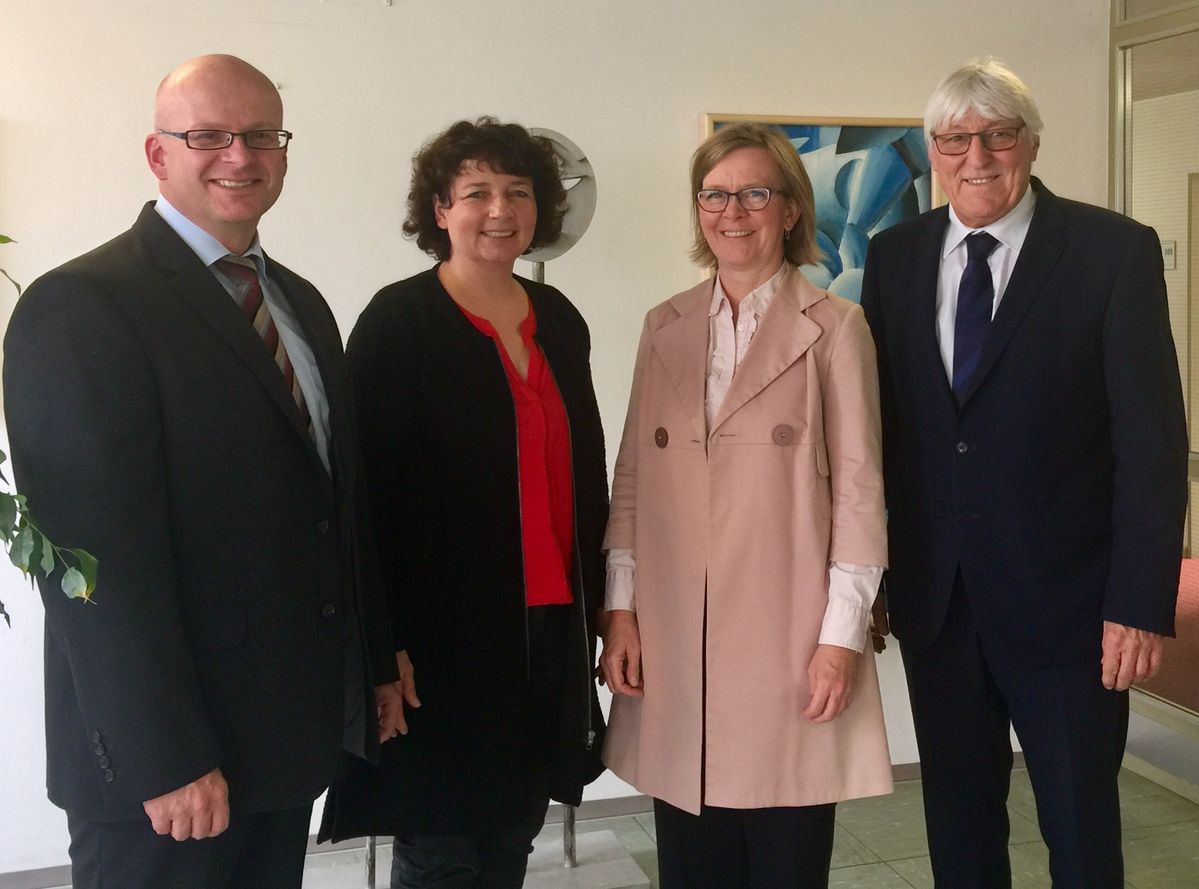 Bildunterschrift: Die Landshuter Abgeordnete Ruth Müller (2.v.li.) mit dem Leiter des Schulamtes Maximilian Pfeffer (re.) und den Schulräten Sylvia Blank (2,v,re,) und Michael Kugler (li.)