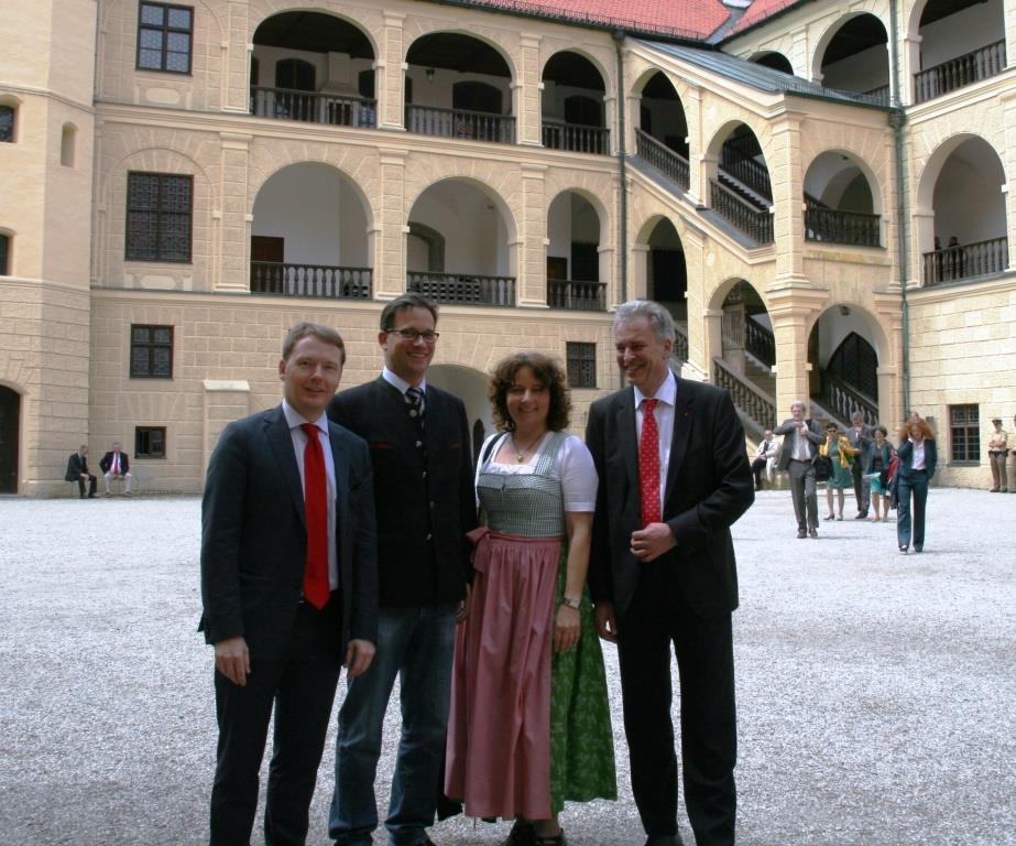 Christian Flisek, Florian Pronold, Ruth Müller und Matthias Jena auf der Burg Trausnitz zur Landshuter Hochzeit