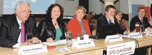 Bildunterschrift: Hochrangige Tagung in Buch (v.l.): MdL Günther Knoblauch, MdL Ruth Müller, MdB Rita Hagl-Kehl, Prof. Dr. Manfred Miosga, MdL Johanna Werner- Muggendorfer und MdL Dr. Christoph Rabenstein. (Fotos: rs)