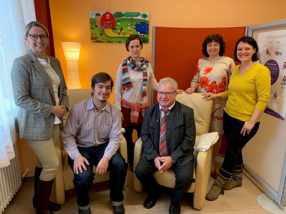 Endlich wieder richtig gute Nachrichten kommen aus der Geburtshilfe Vilsbiburg, deren Schließung letzten Sommer bereits viele Sorgen bereitet hatte. Ruth Müller, MdL, die zusammen mit Vilsbiburgs 2. Bürgermeister Hans Sarcher als Kreisräte dem Verwaltungsrat von LAKUMED angehört, besuchten gemeinsam mit Bürgermeister-Kandidatin Sibylle Entwistle und dem neuen Lakumed-Geschäftsführer Jakob Fuchs die neuen Hebammensprecherinnen Antonia von Soden und Sonja Danner. „Es war genau der richtige Zeitpunkt nach meiner Elternzeit, als ich von der drohenden Schließung erfuhr“ so von Soden, als sie von ihrem beherzten Brief an den Landkreis Landshut erzählte. Von da an setzten Antonia von Soden und Sonja Danner alles dran ein Hebammenteam zu stellen und freuen sich nun, seit dem 1. Januar 2020 im Krankenhaus Vilsbiburg mit einem zehnköpfigen Hebammenteam Schwangeren in der Region ein breites Spektrum an geburtshilflicher Einrichtungen anzubieten. „Wir sind gut aufgestellt“ erklärte Danner „denn wir sind die Fachfrauen für eine normale Geburt, und falls es doch Komplikationen gäbe, arbeiten wir hier Seite an Seite mit den Ärzten am Krankenhaus Vilsbiburg“.