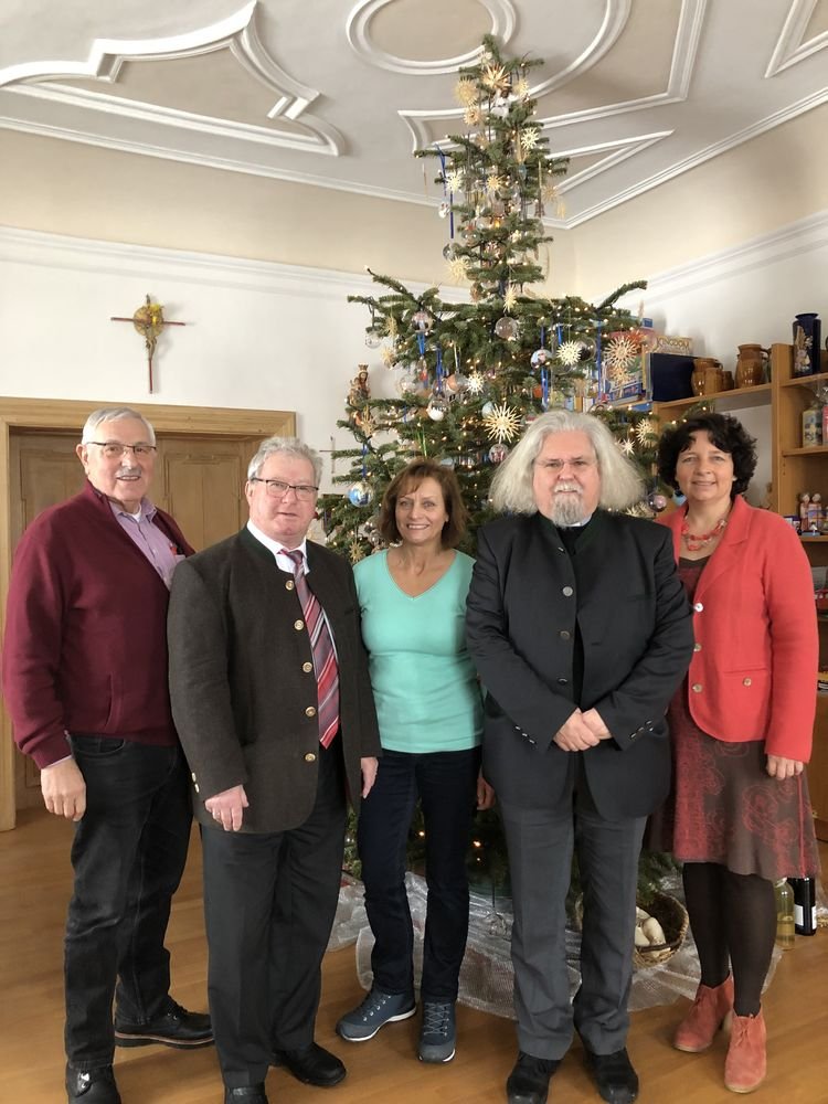 Zum „Christbaum loben“ hatte Stadtpfarrer Peter König die Politiker aus der Region eingeladen und gemeinsam mit Vilsbiburgs 2. Bürgermeister Hans Sarcher waren die Pfeffenhausener Landtagsabgeordnete Ruth Müller, Kreisrat Gerhard Babl und Stadträtin Theresa Bergwinkl der Einladung gefolgt.